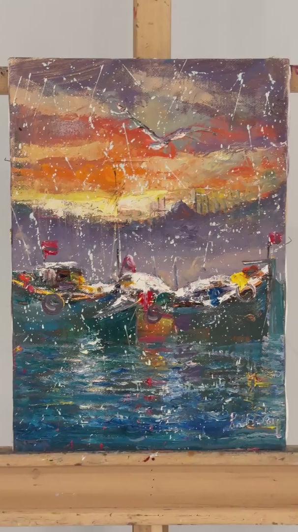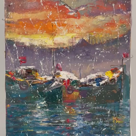 Boğazda Gün Yağlı Boya Tablosu