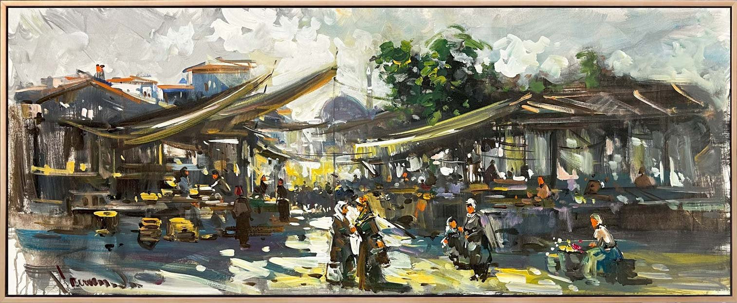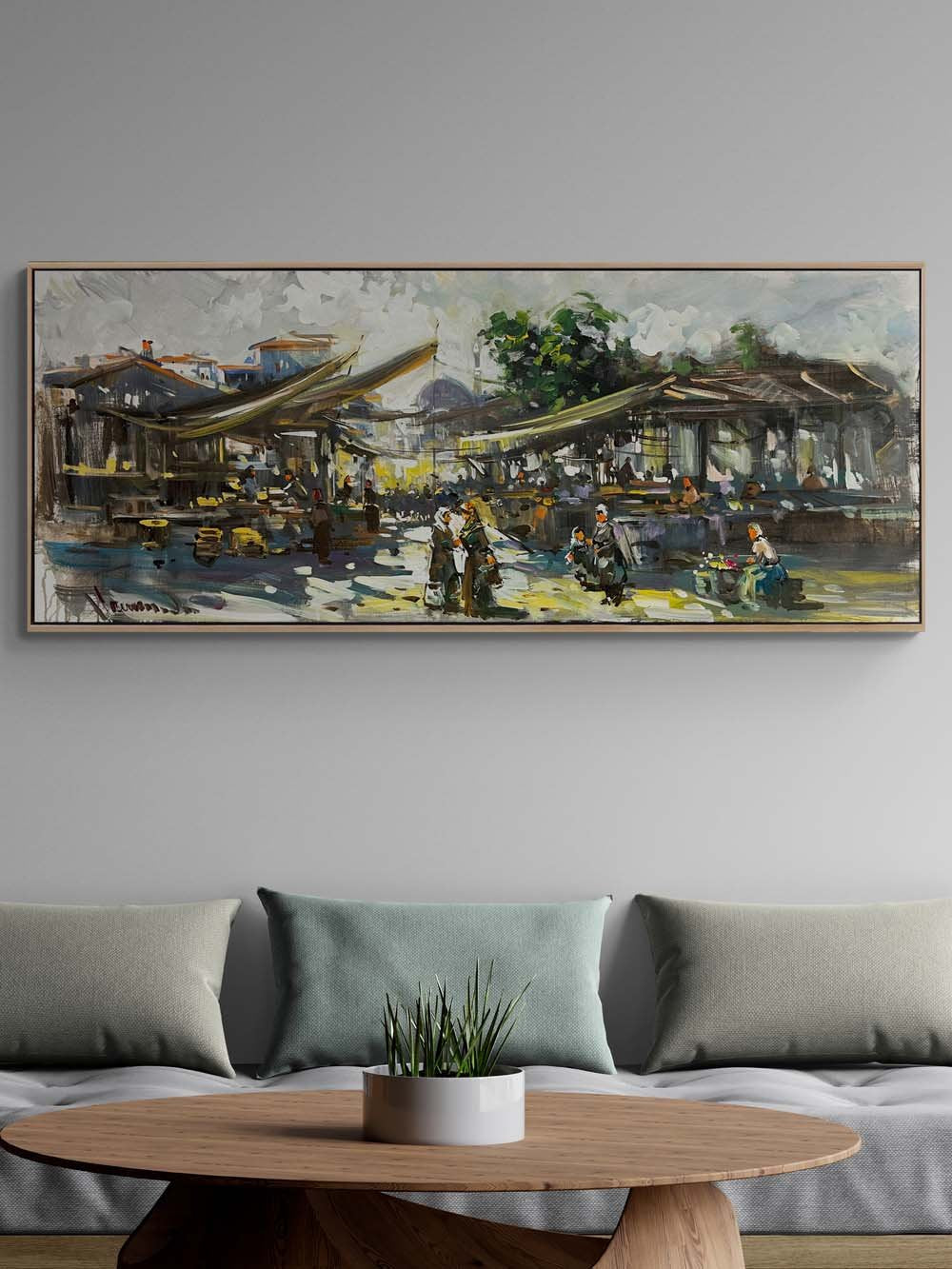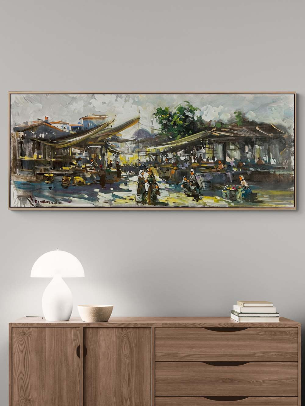 Zamanın İçinde Bir Pazar Yağlı Boya Tablosu
