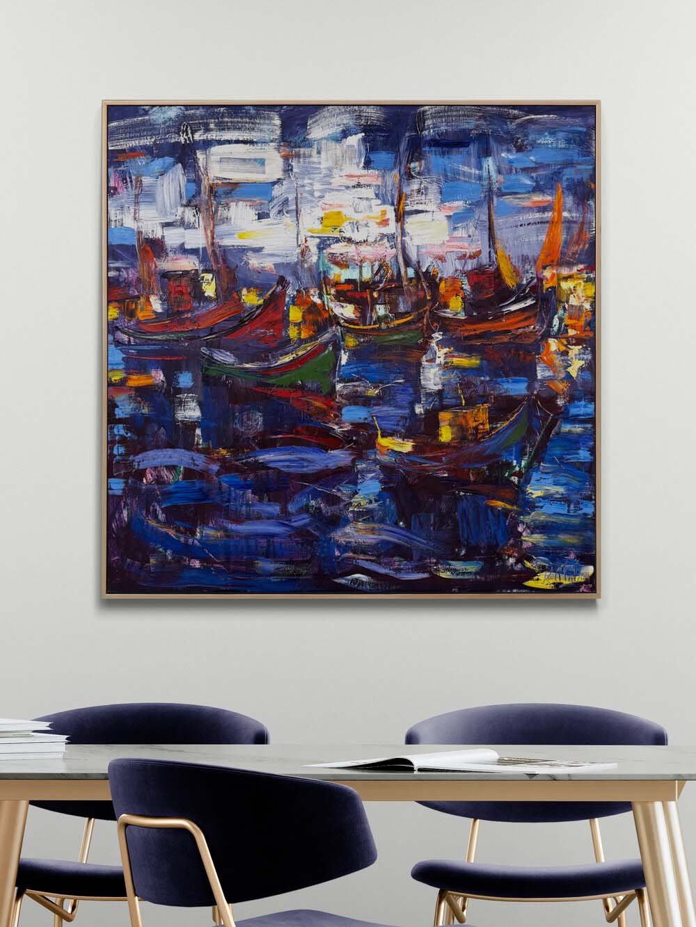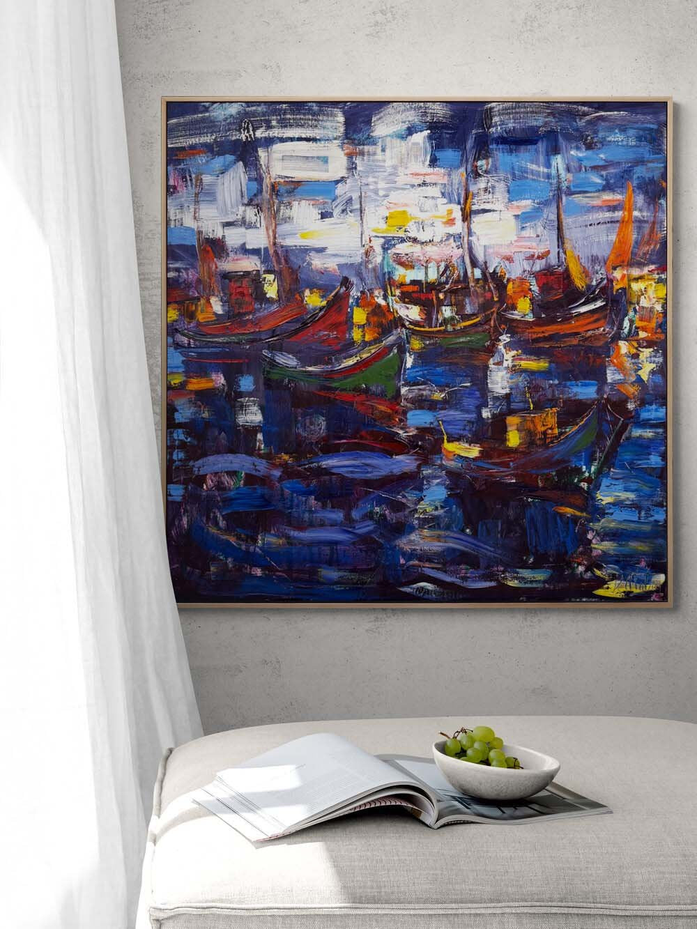 - Özel olarak üretilen 400 gr kalınlığında 1.sınıf sanatsal yağlıboya tuval üzerine çalışılır.