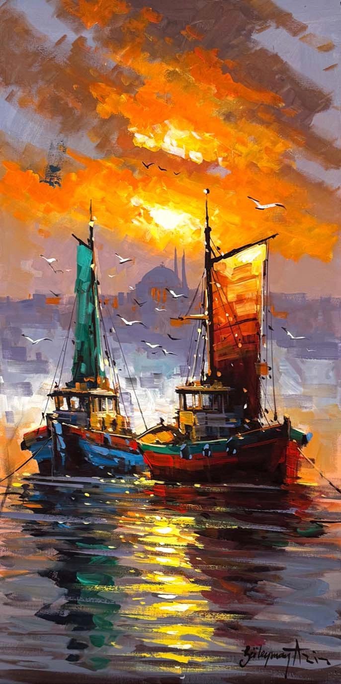 Altın Saatte Yelkenler Yağlı Boya Tablosu