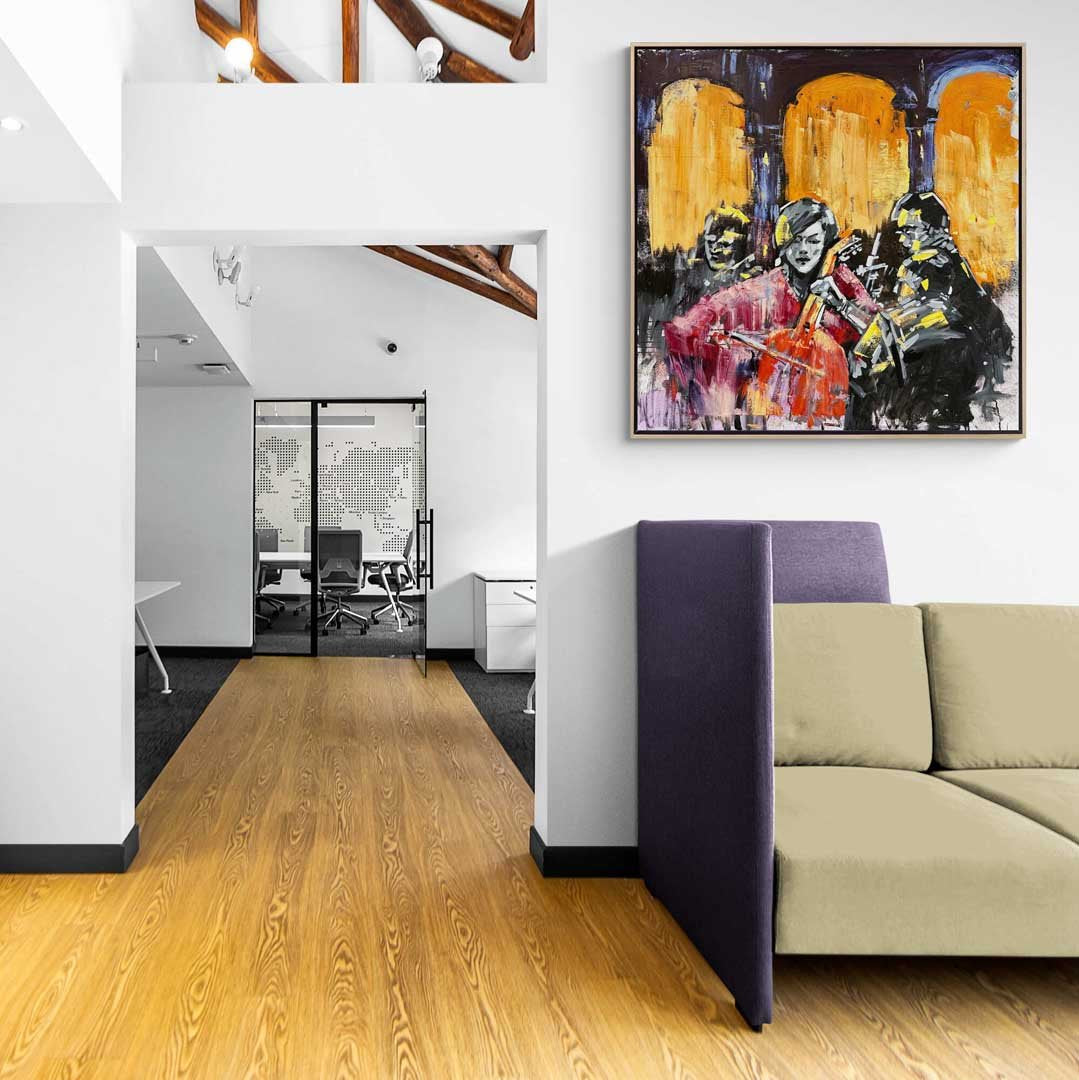- Özel olarak üretilen 400 gr kalınlığında 1.sınıf sanatsal yağlıboya tuval üzerine çalışılır.