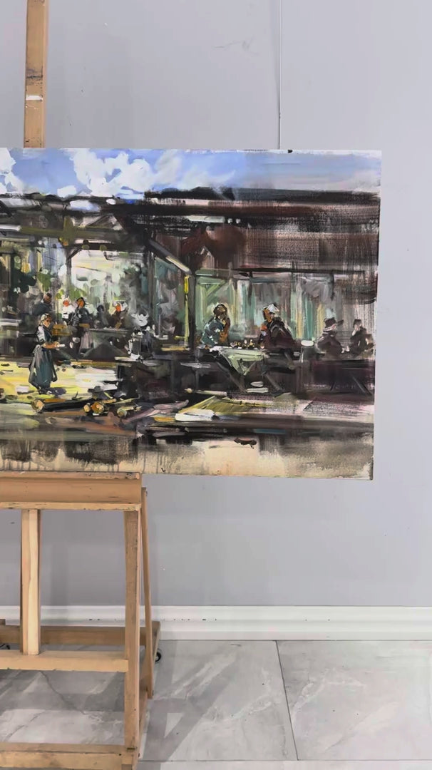 Köy Kahvesinde Yağlı Boya Tablosu