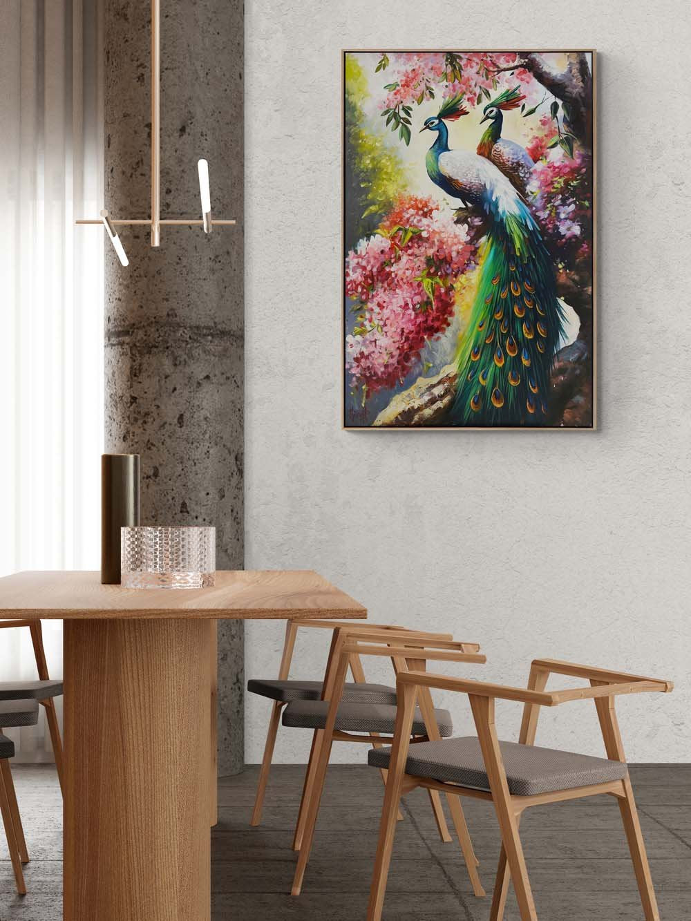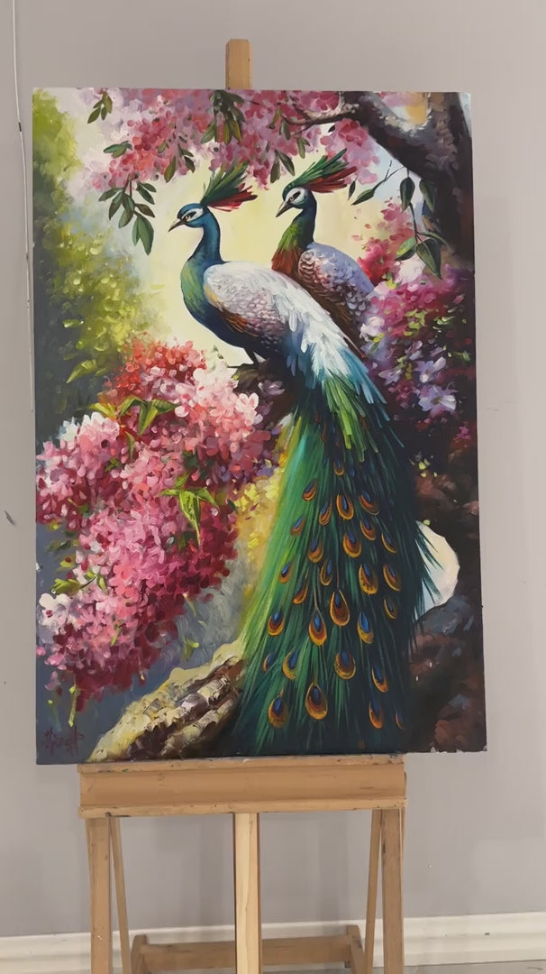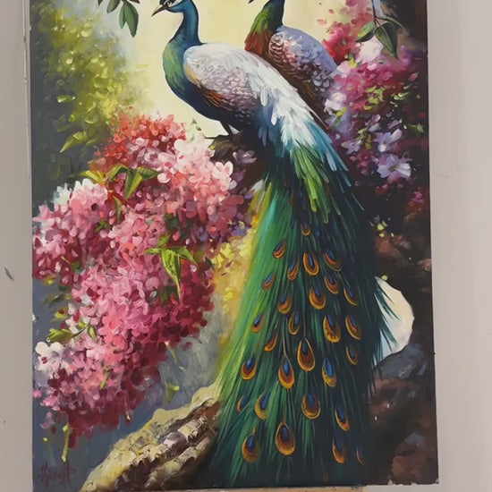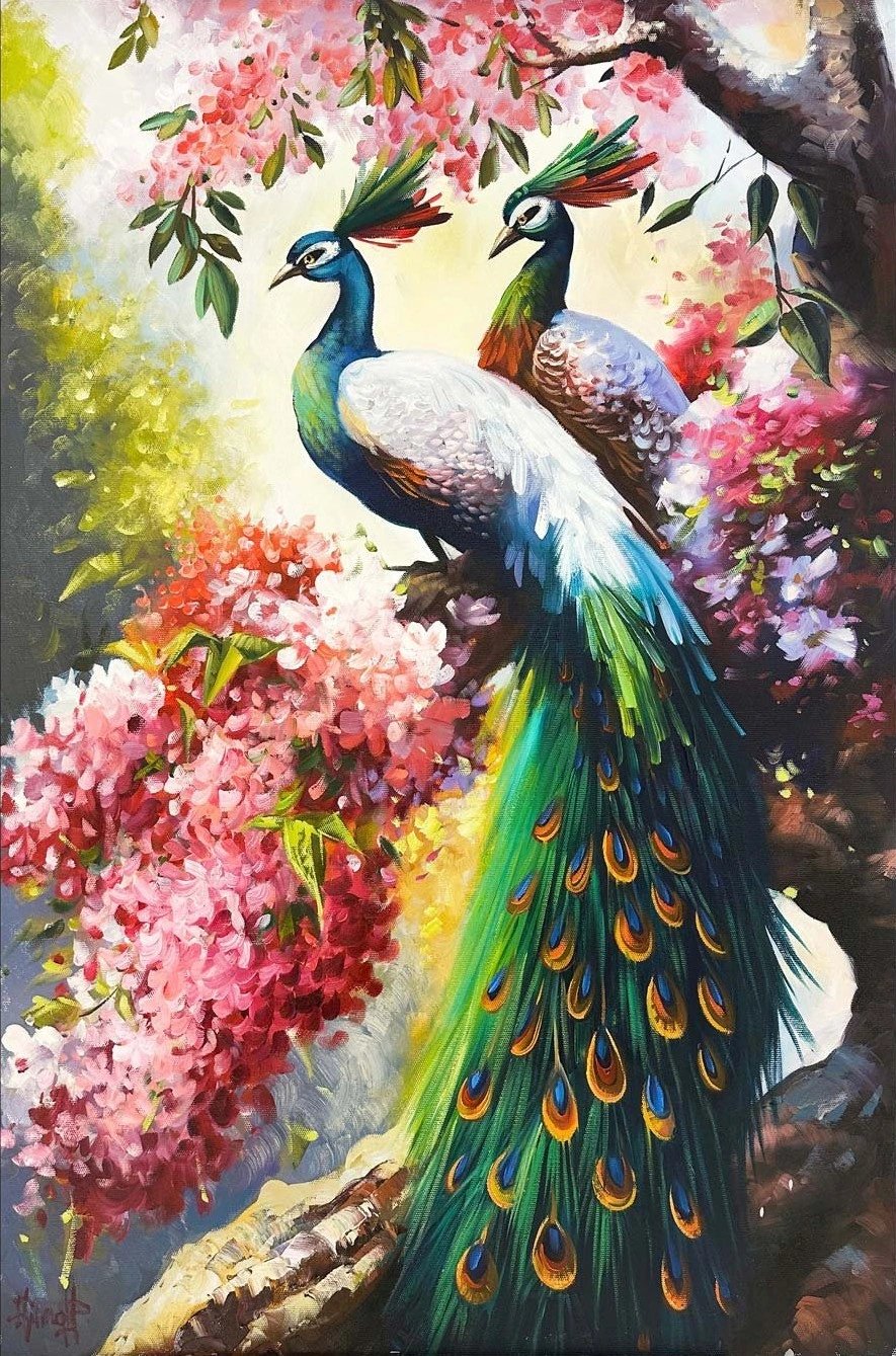 Bahçede Tavus Kuşları Yağlı Boya Tablosu