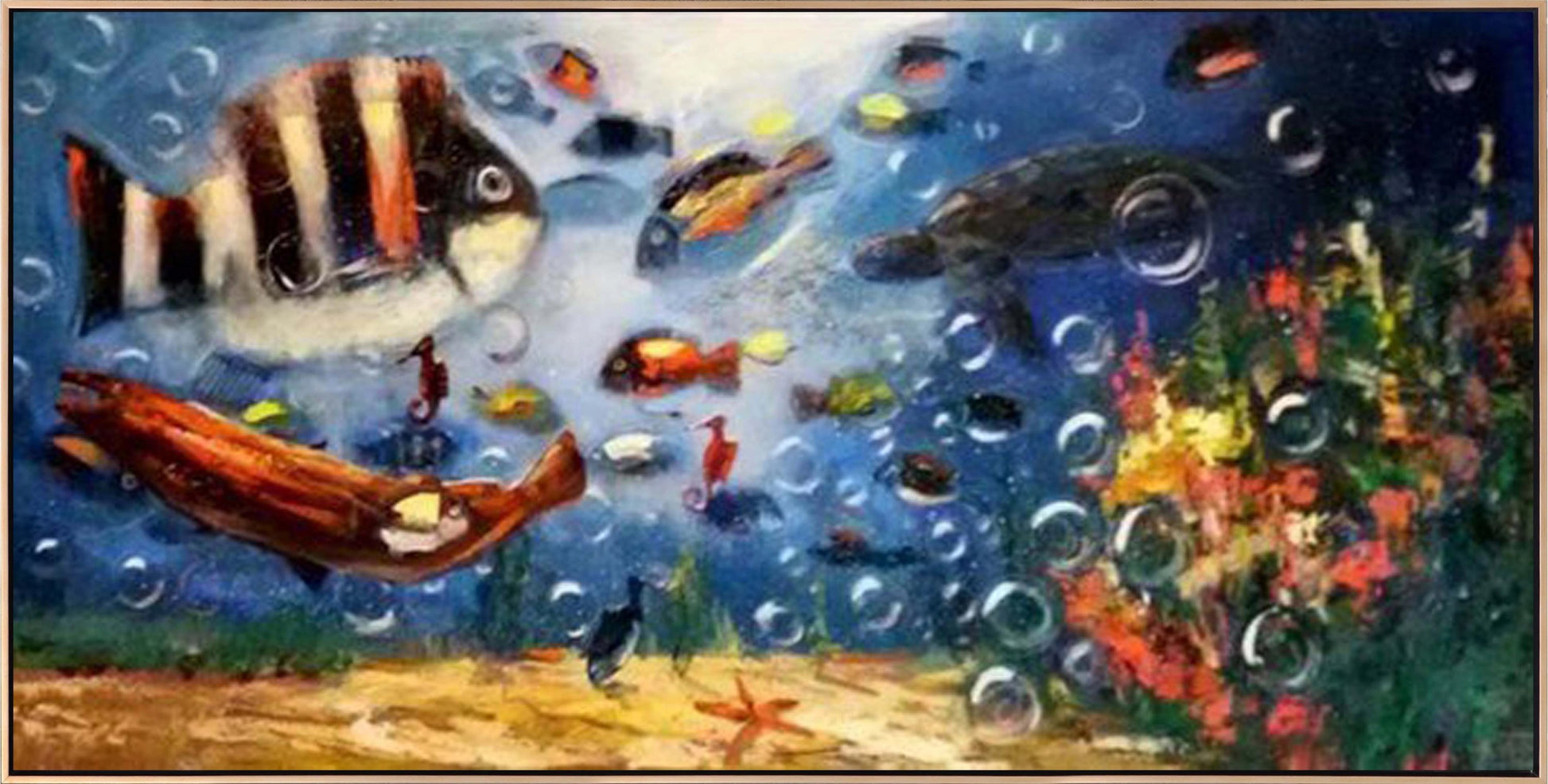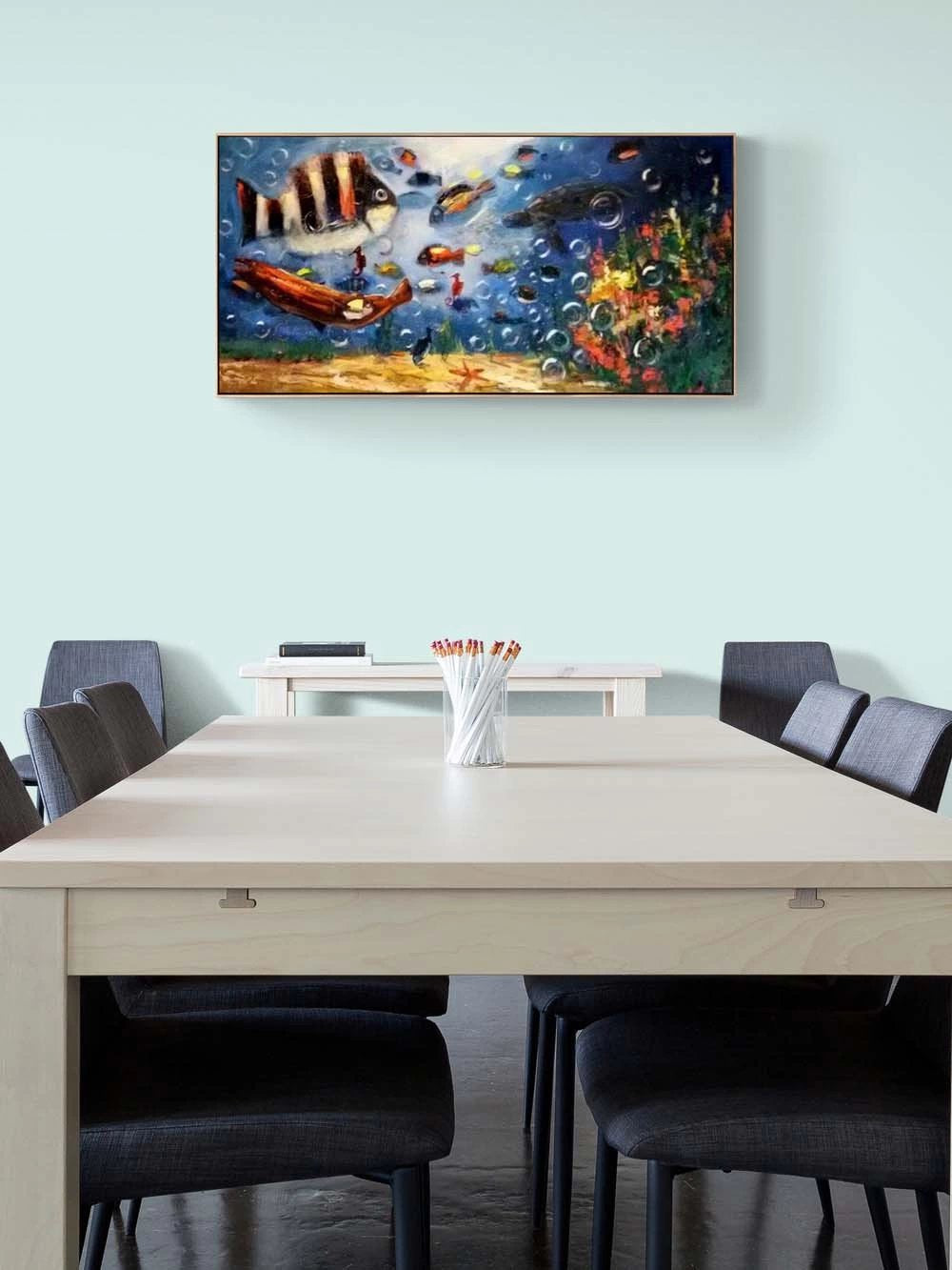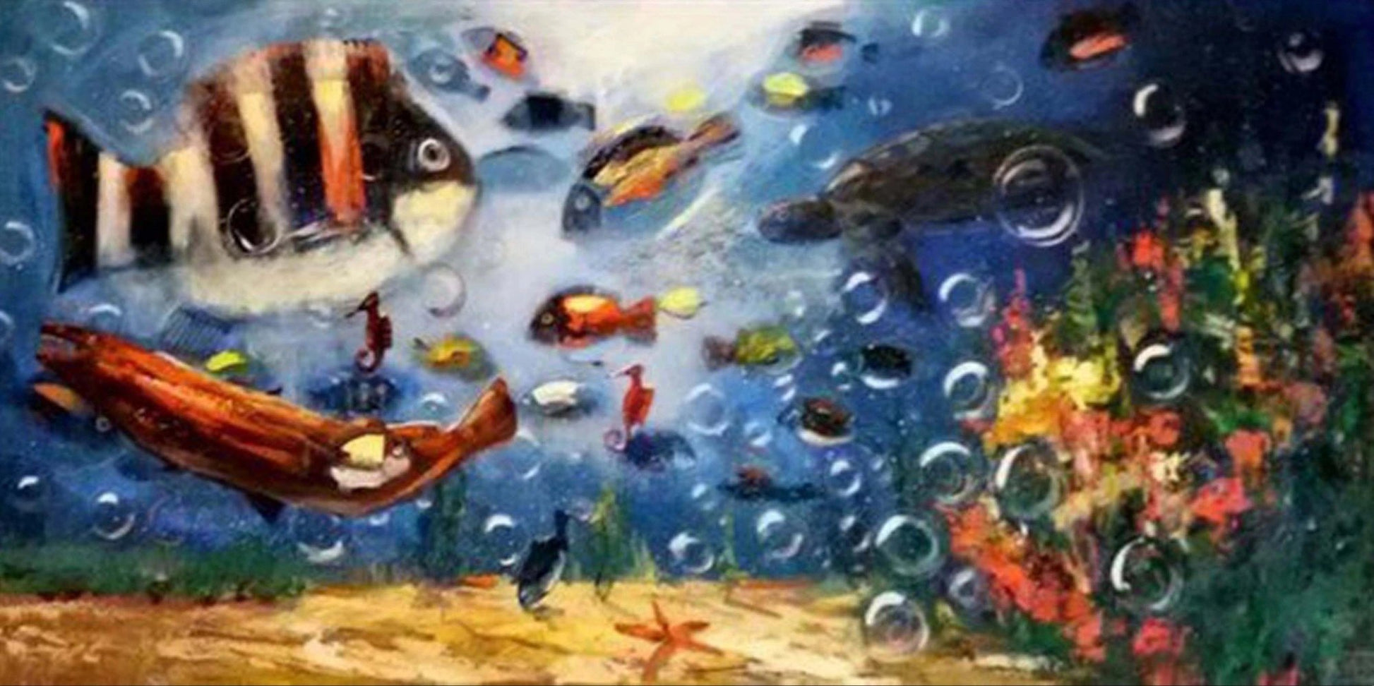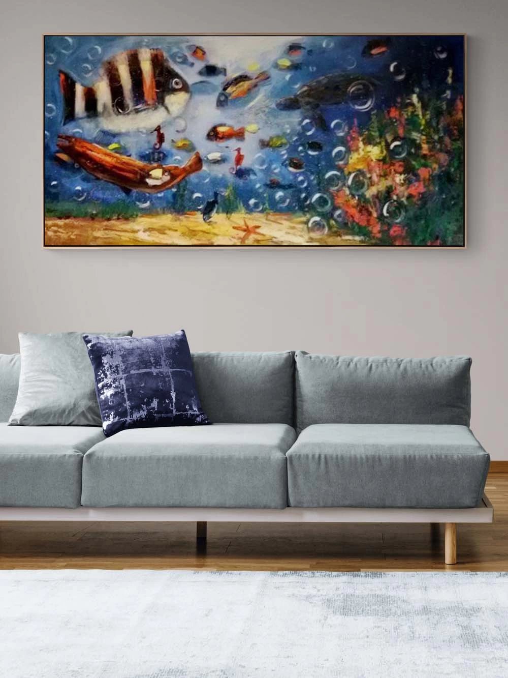 Balıkların Mavi Dünyası Yağlı Boya Tablosu