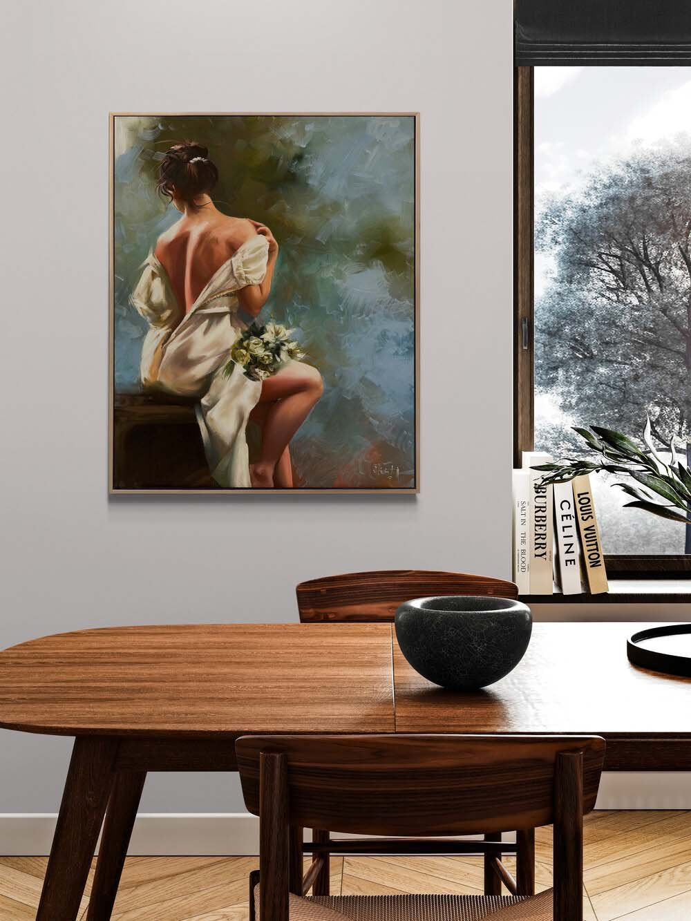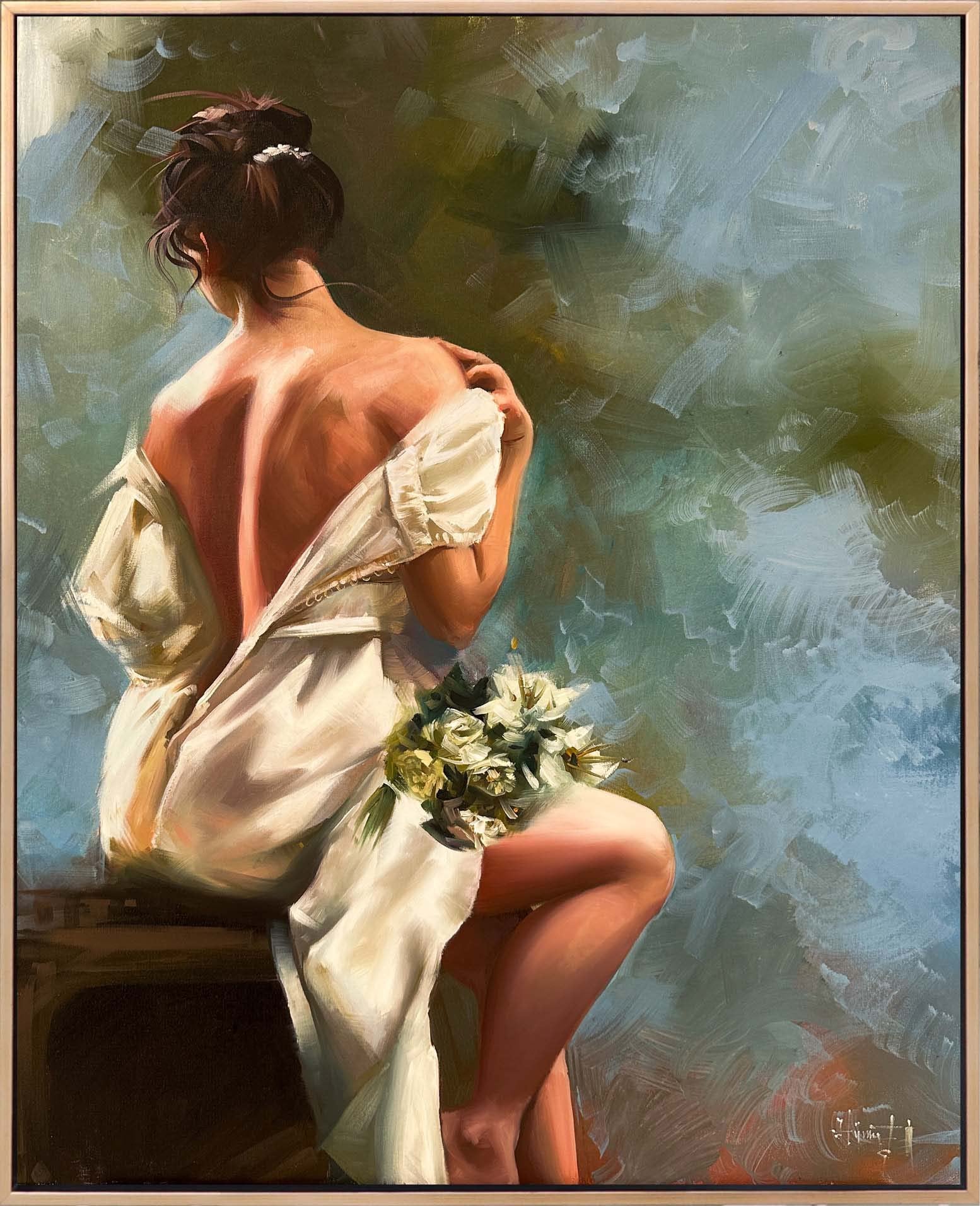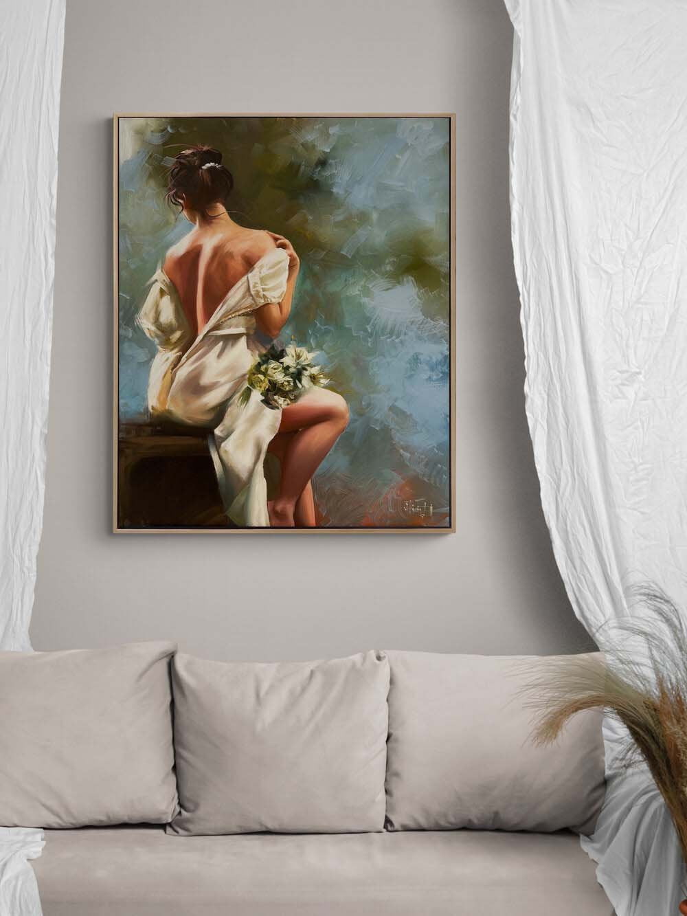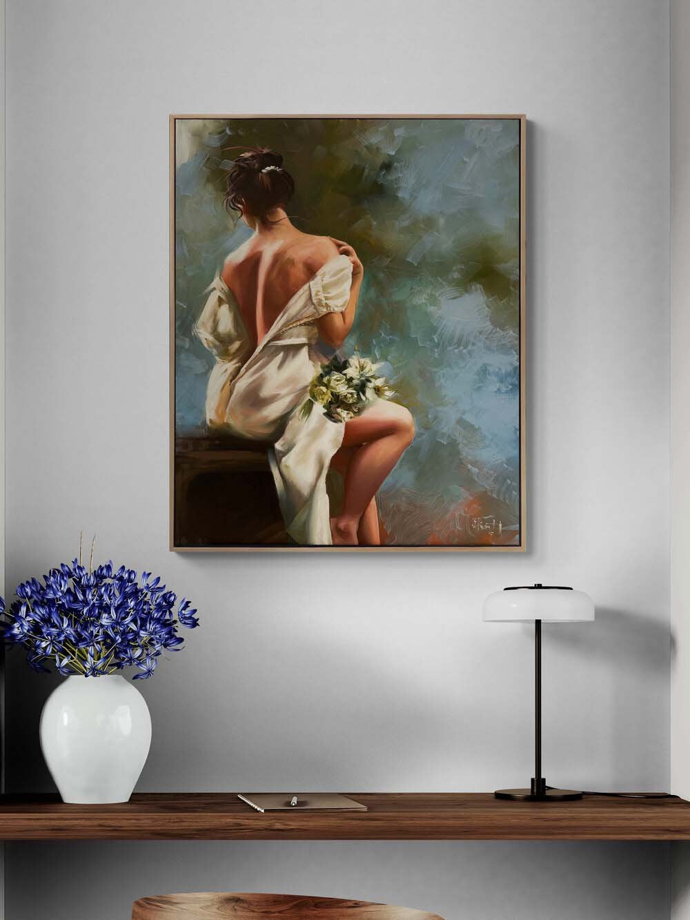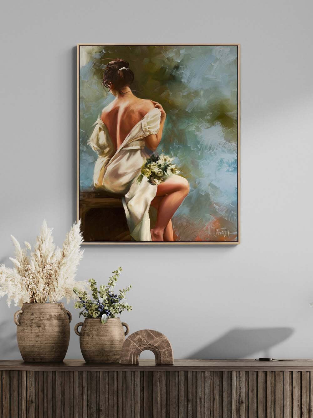 Beyaz Çiçekler ve Ruh Yağlı Boya Tablosu
