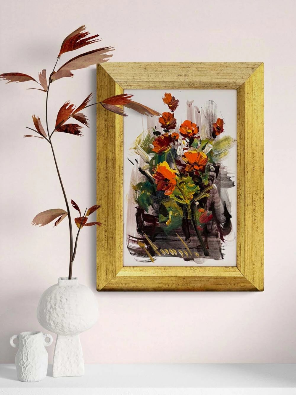 Beyazda Açan Çiçekler Yağlı Boya Tablosu