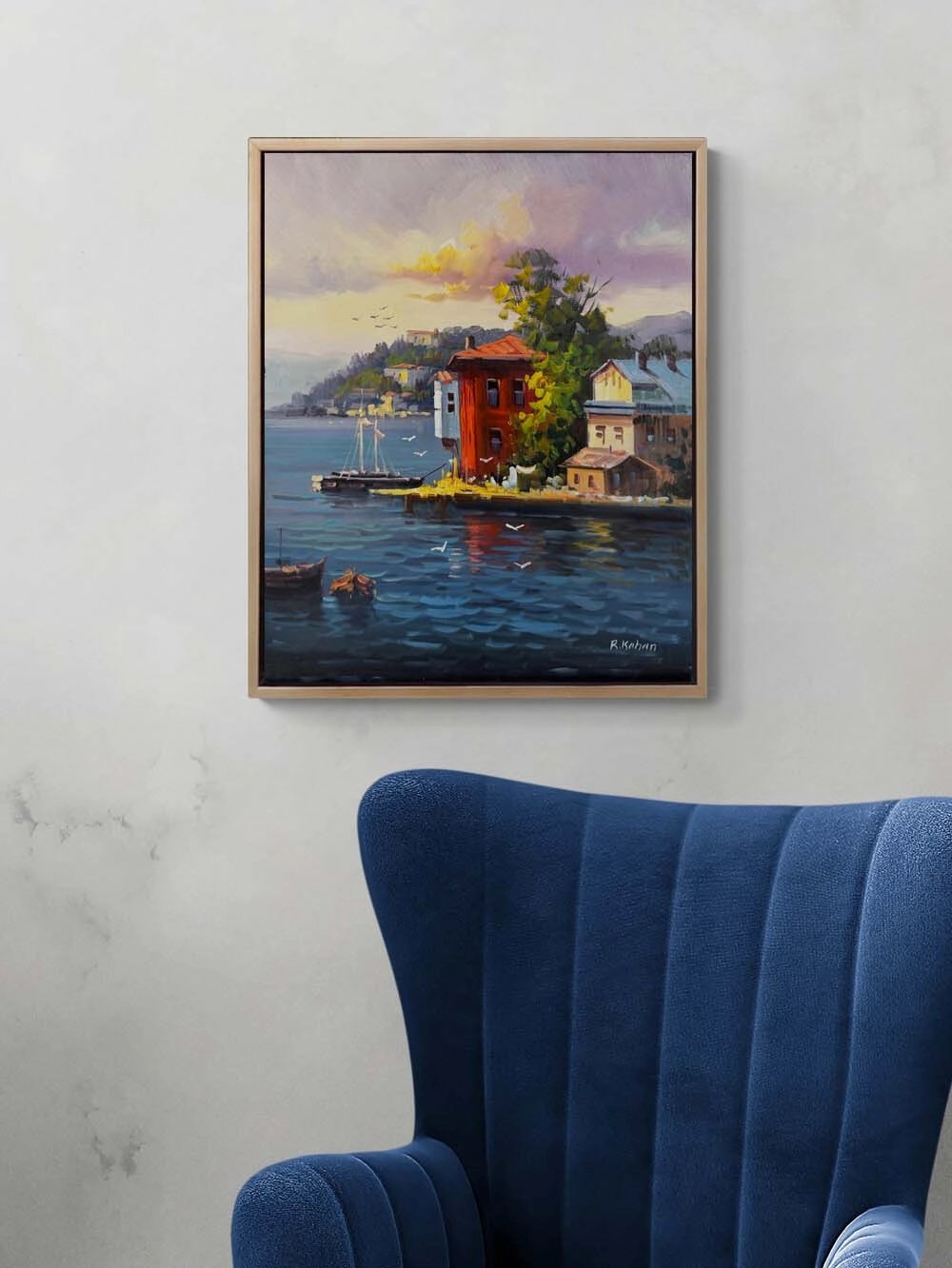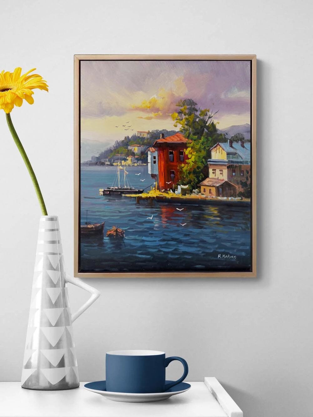 Boğaz Manzarası Yalılar Yağlı Boya Tablosu