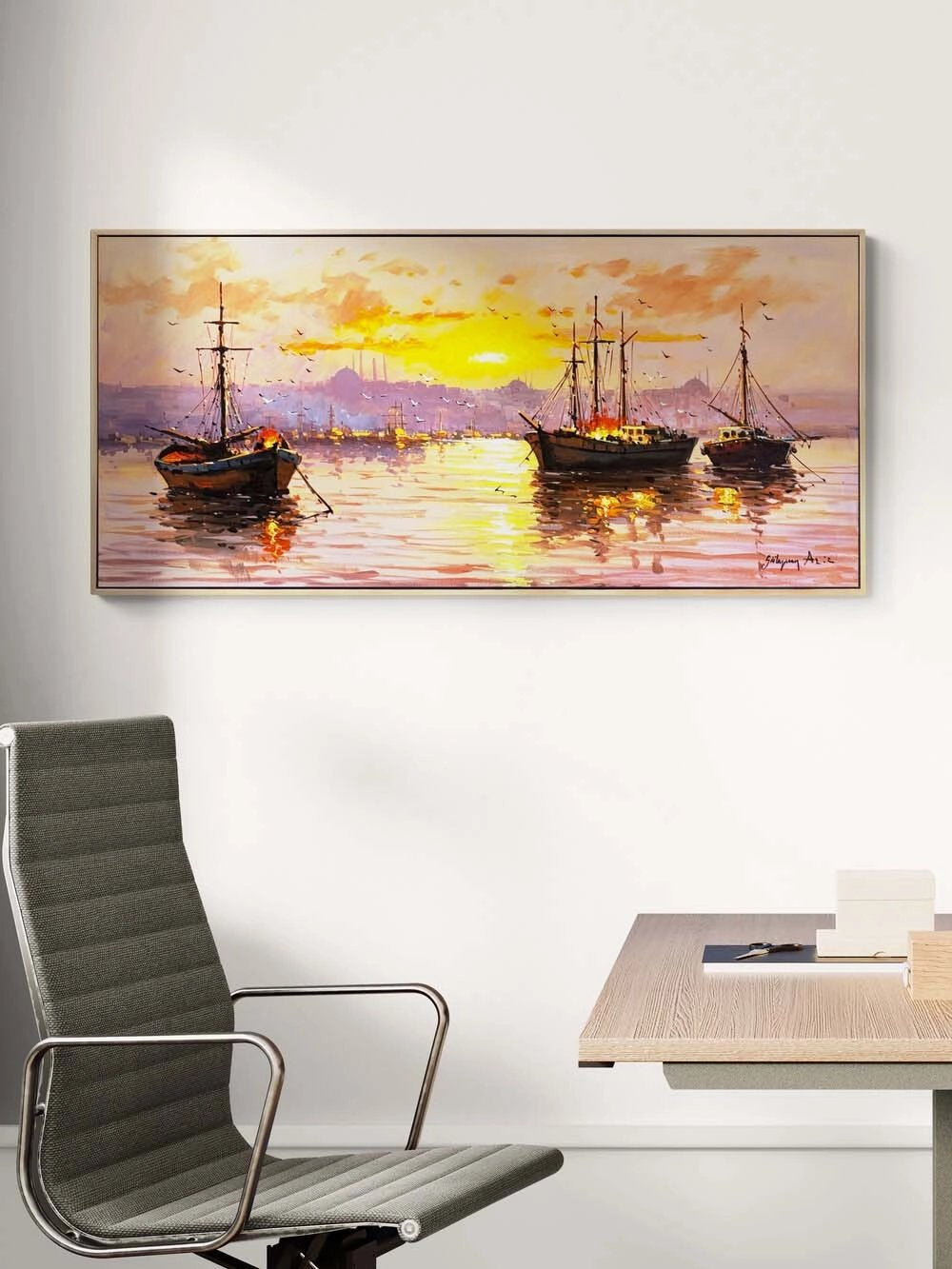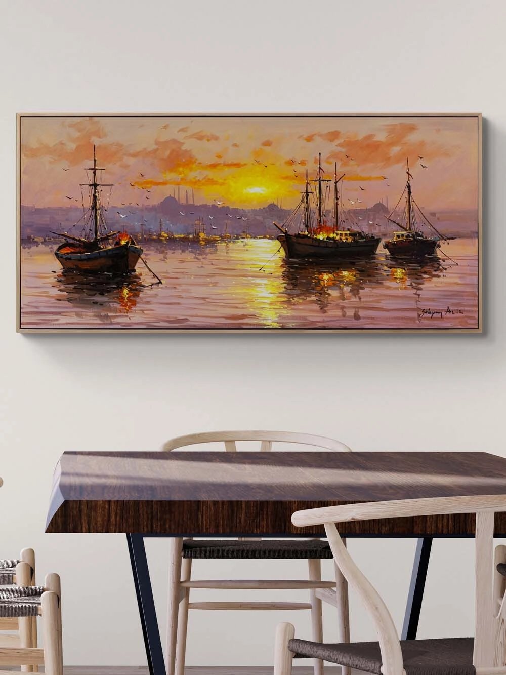 Boğazda Güneşin Vedası Yağlı Boya Tablosu