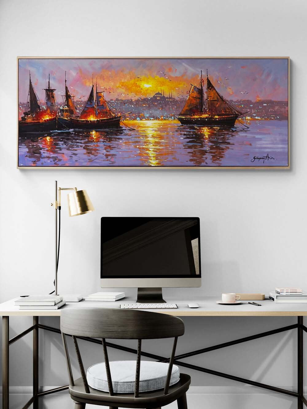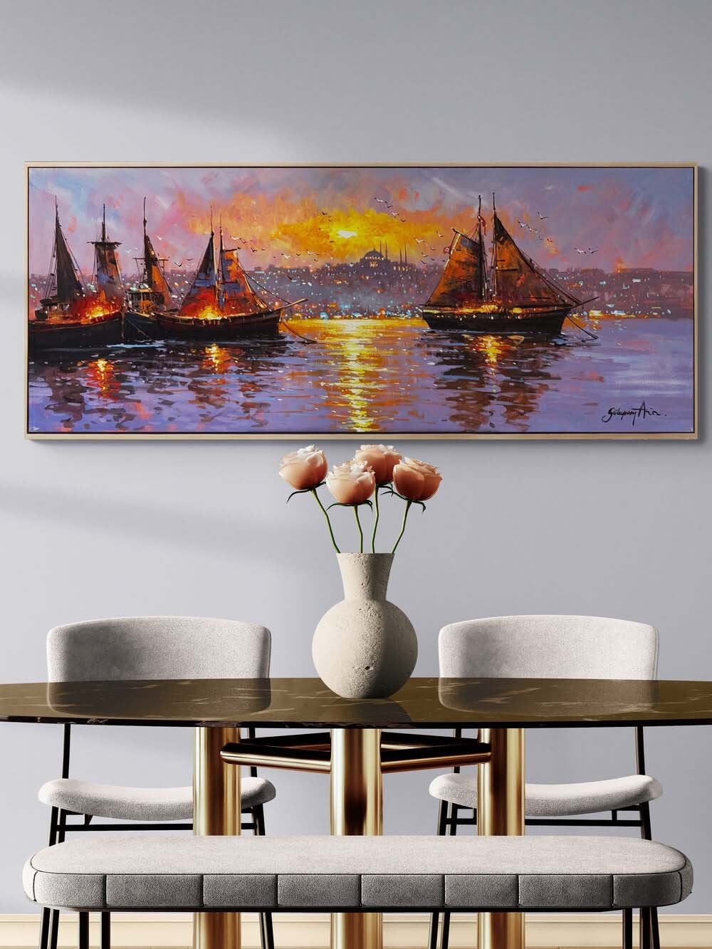 - Özel olarak üretilen 400 gr kalınlığında 1.sınıf sanatsal yağlıboya tuval üzerine çalışılır.
