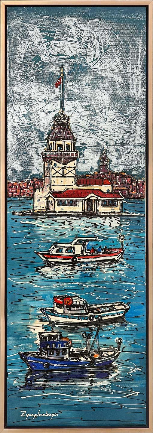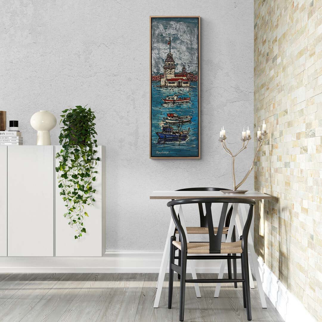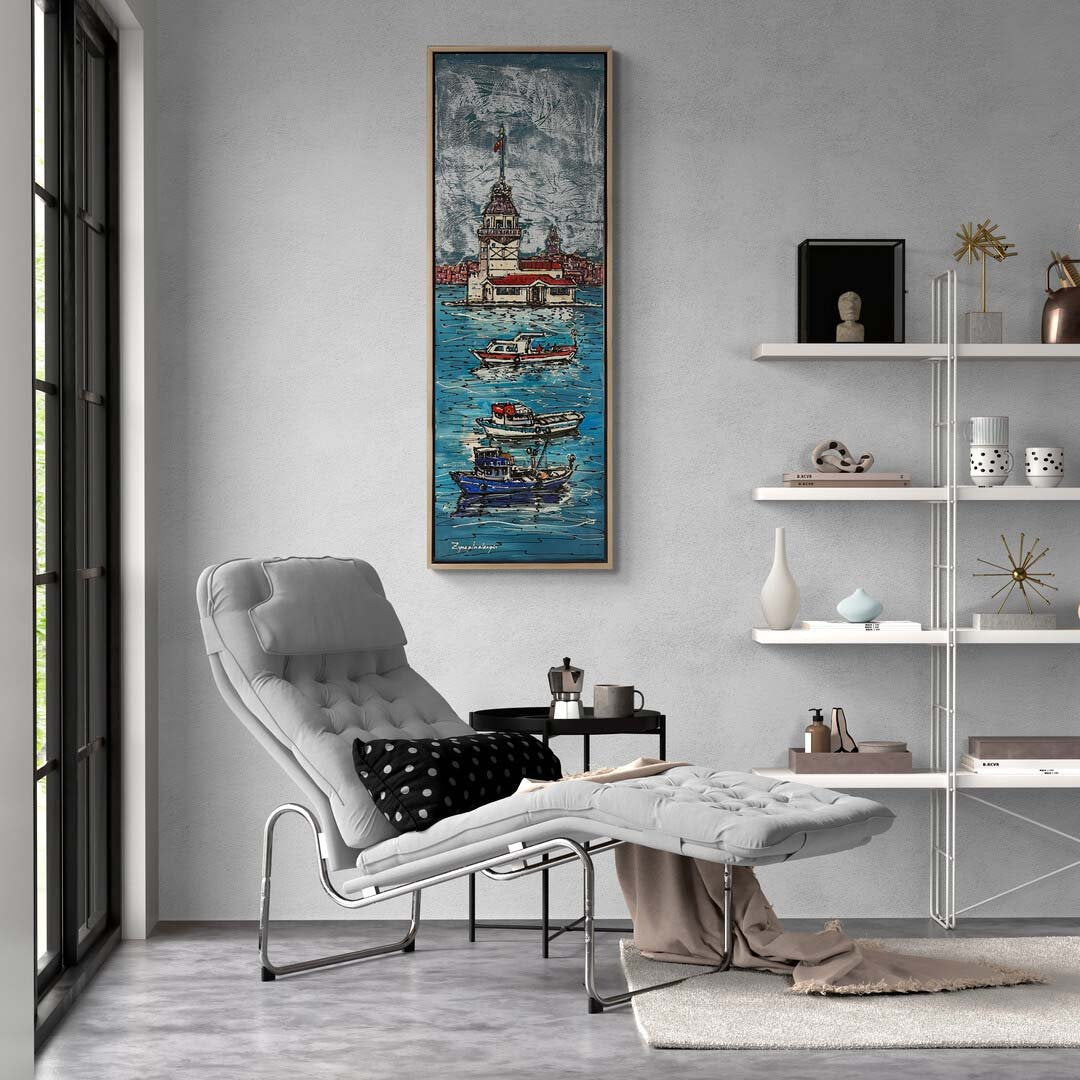 Boğazın Renkli Tekneleri Yağlı Boya Tablosu