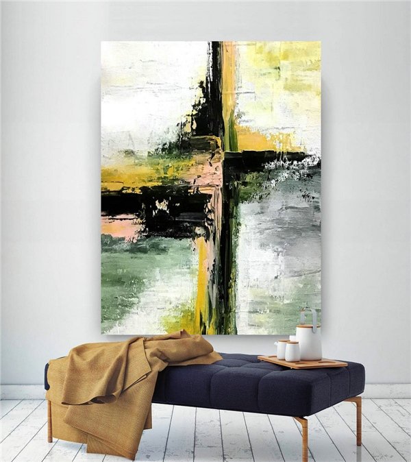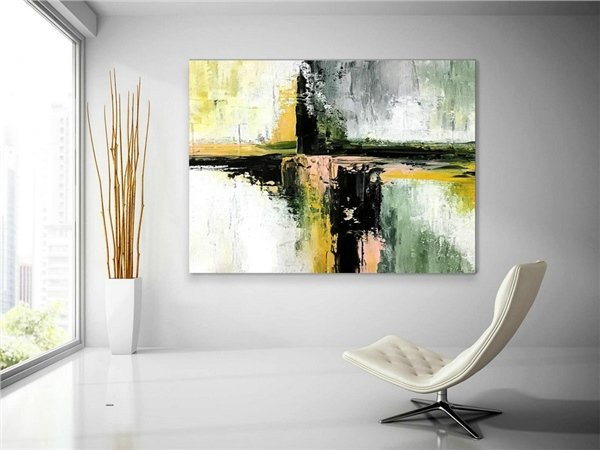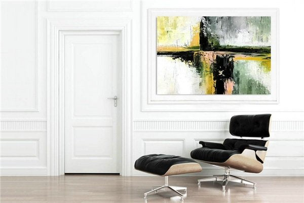 Çağdaş Yeşil Sarı Siparişe Özel Soyut Yağlı Boya Tablo