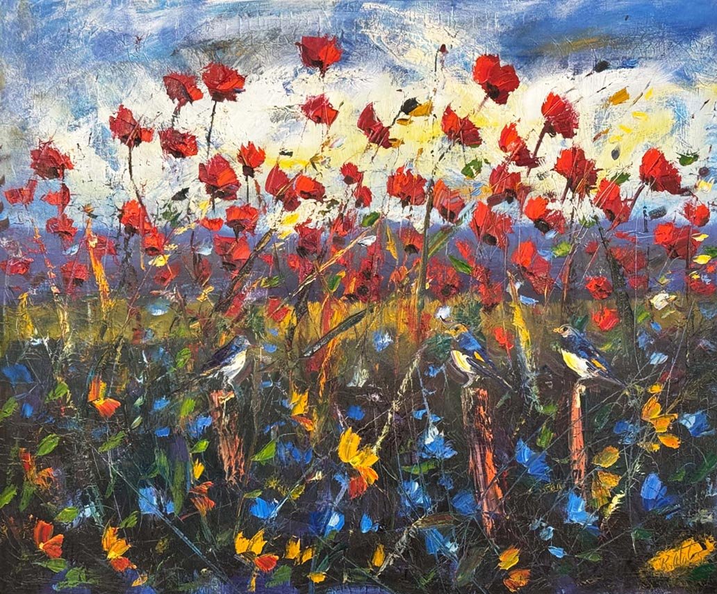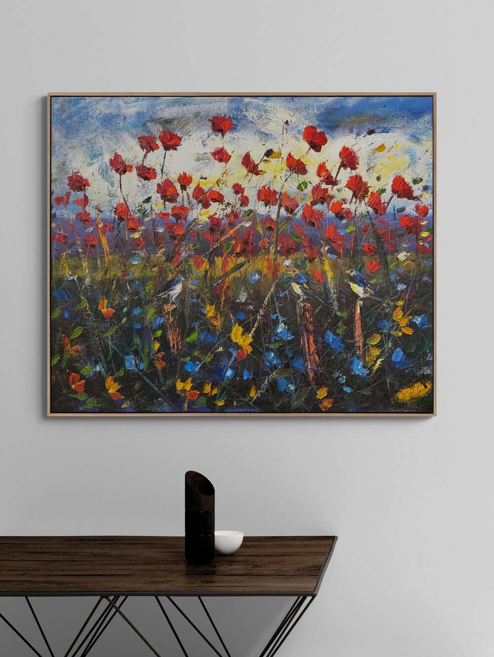 Dağ Eteğinde Gelincikler Yağlı Boya Tablosu