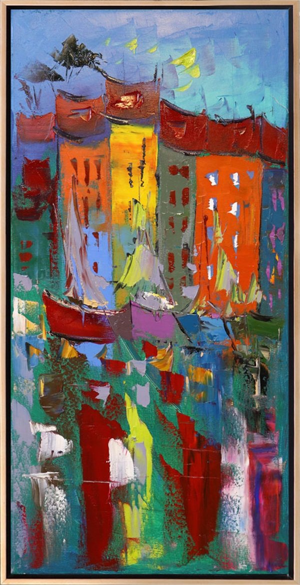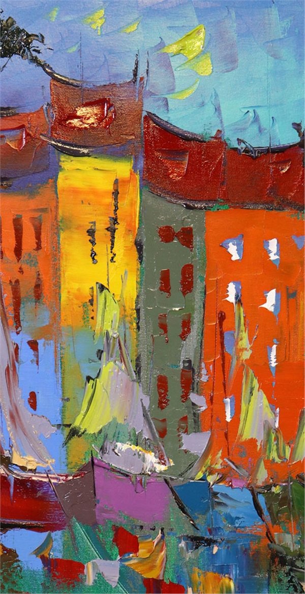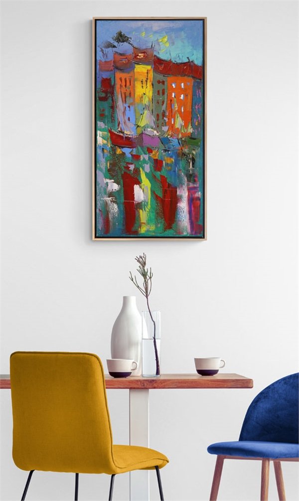 Soyut Şehir Manzarası Yağlı Boya Tablosu