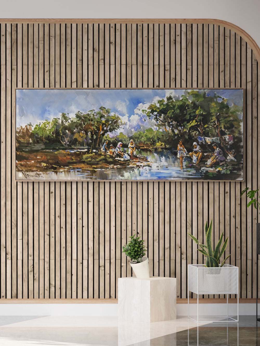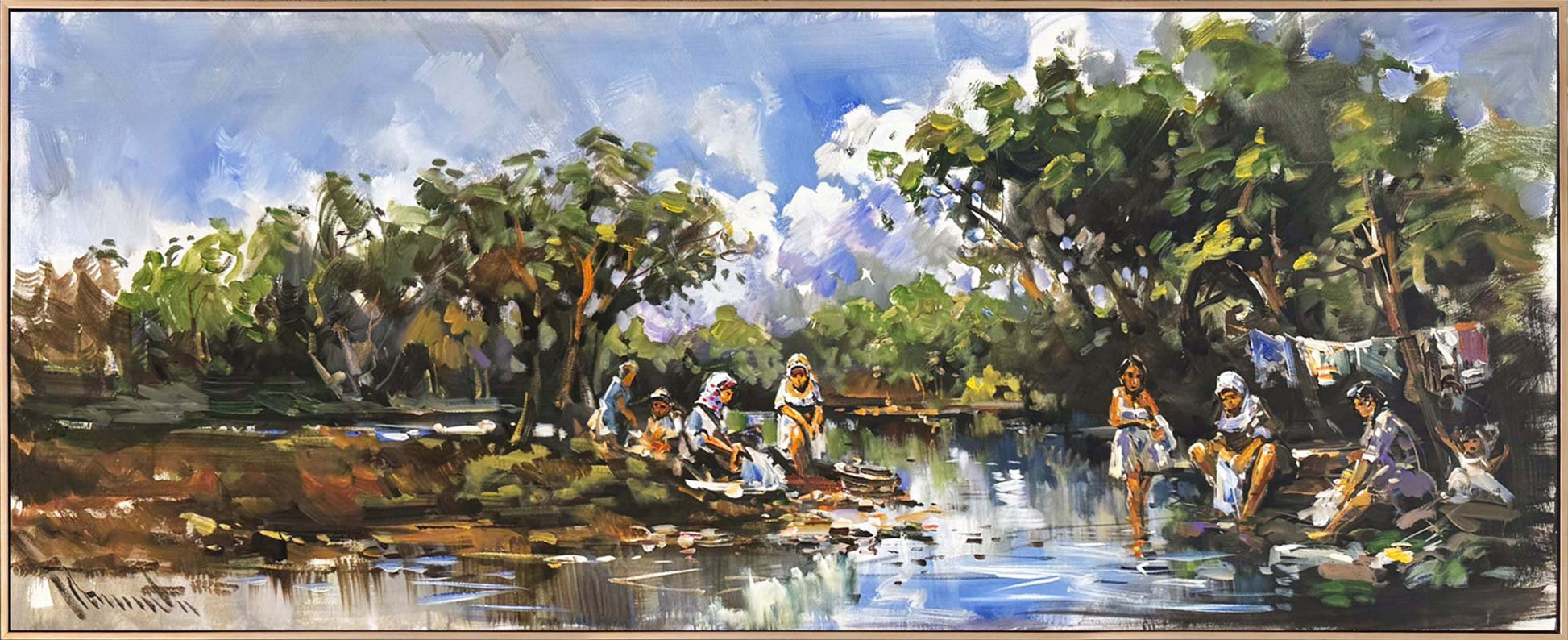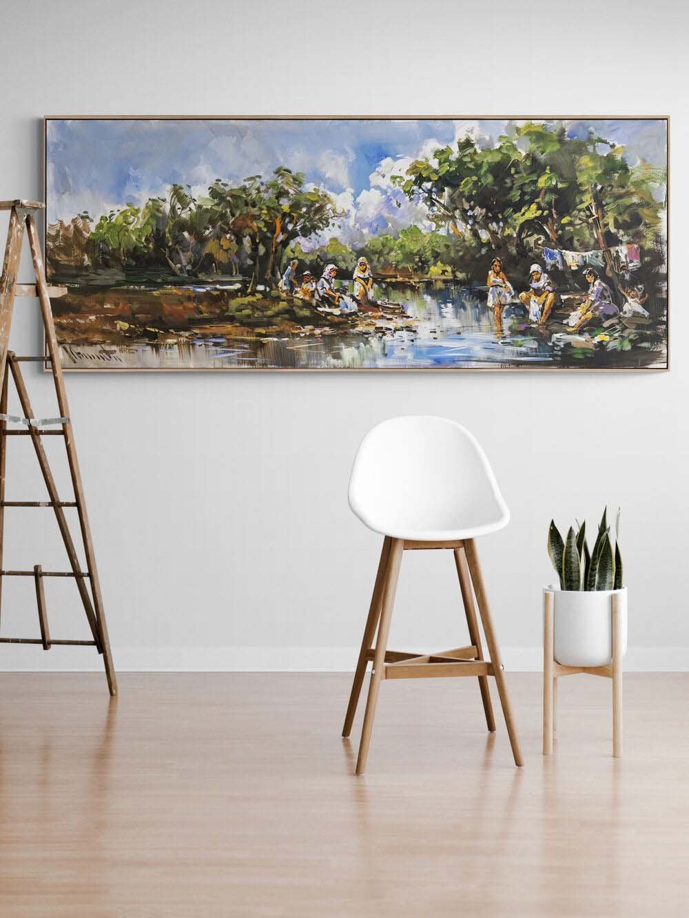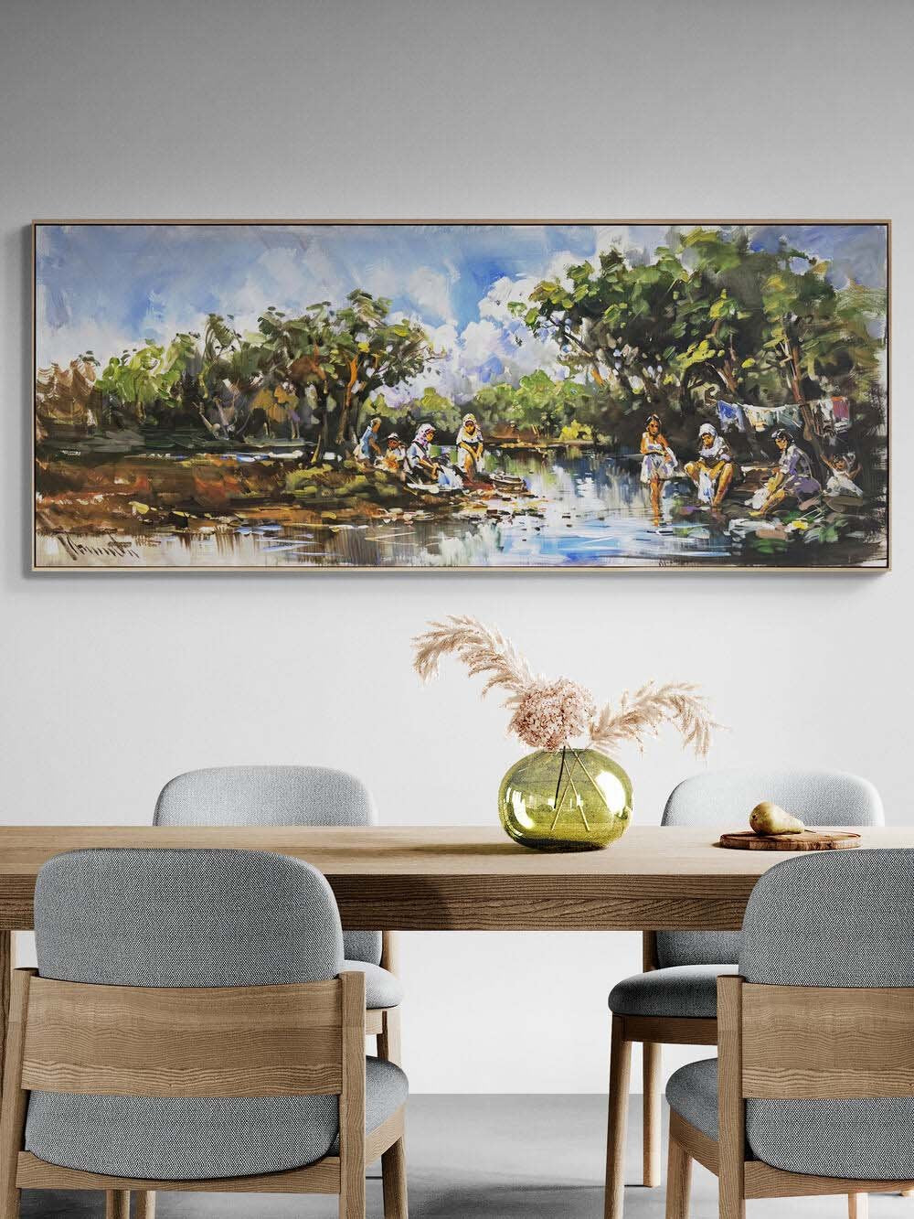 Dere Kenarında Çamaşır Yağlı Boya Tablosu