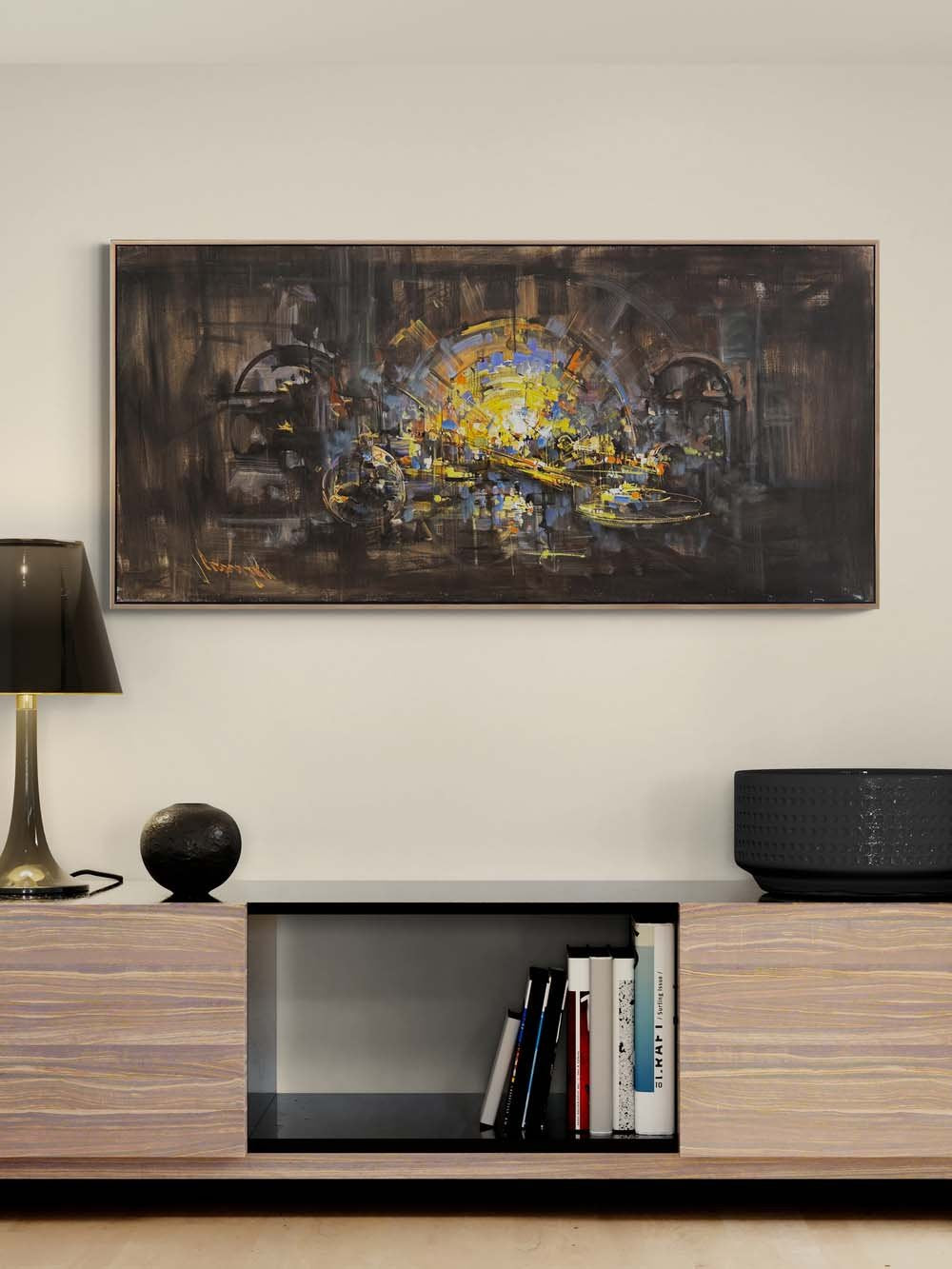 - Özel olarak üretilen 400 gr kalınlığında 1.sınıf sanatsal yağlıboya tuval üzerine çalışılır.