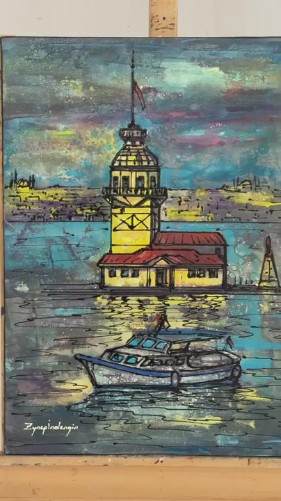 Kız Kulesi’nde Akşam Yağlı Boya Tablosu