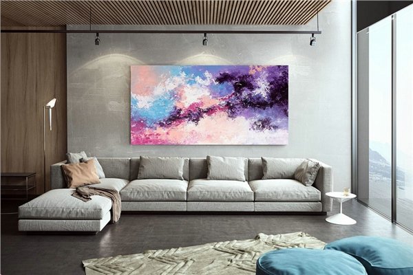 Fuşya Mor ve Mavi Siparişe Özel Soyut Yağlı Boya Tablo