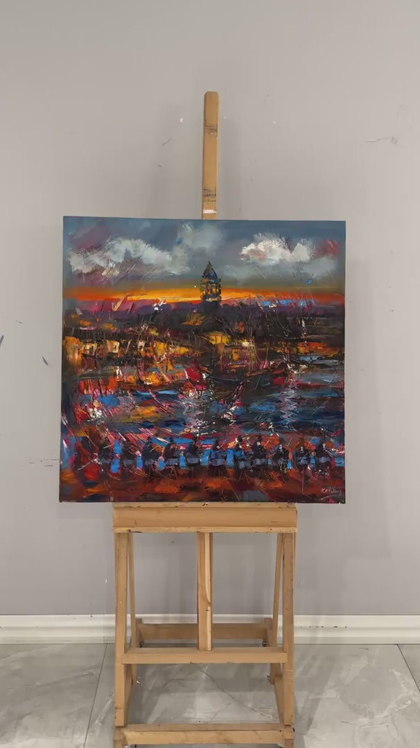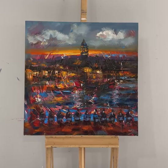 Galata Kulesi ve Müzik Yağlı Boya Tablosu
