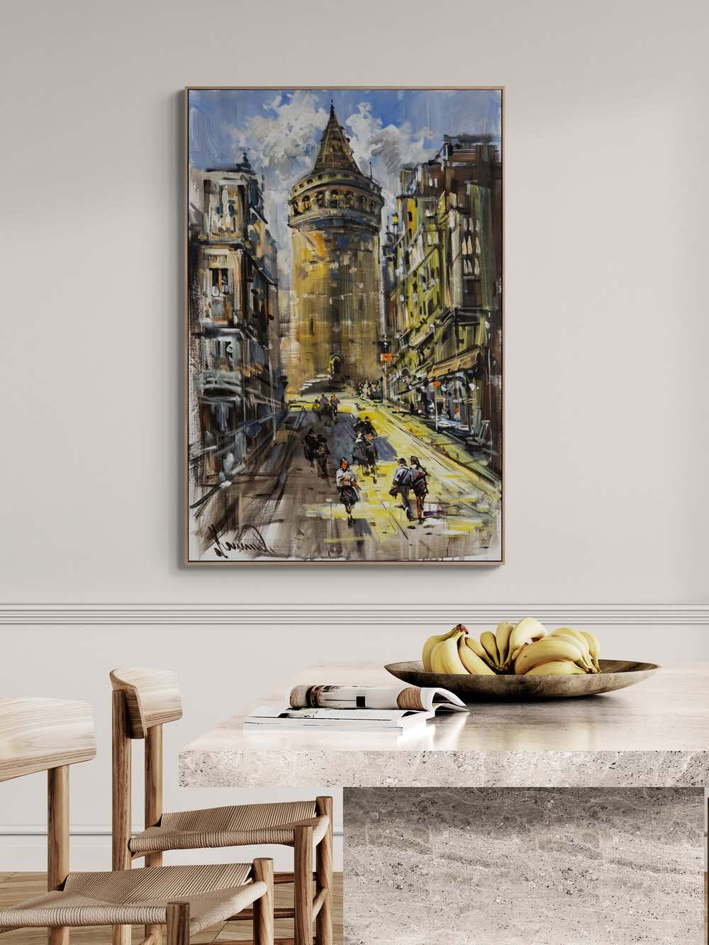 - Özel olarak üretilen 400 gr kalınlığında 1.sınıf sanatsal yağlıboya tuval üzerine çalışılır.
