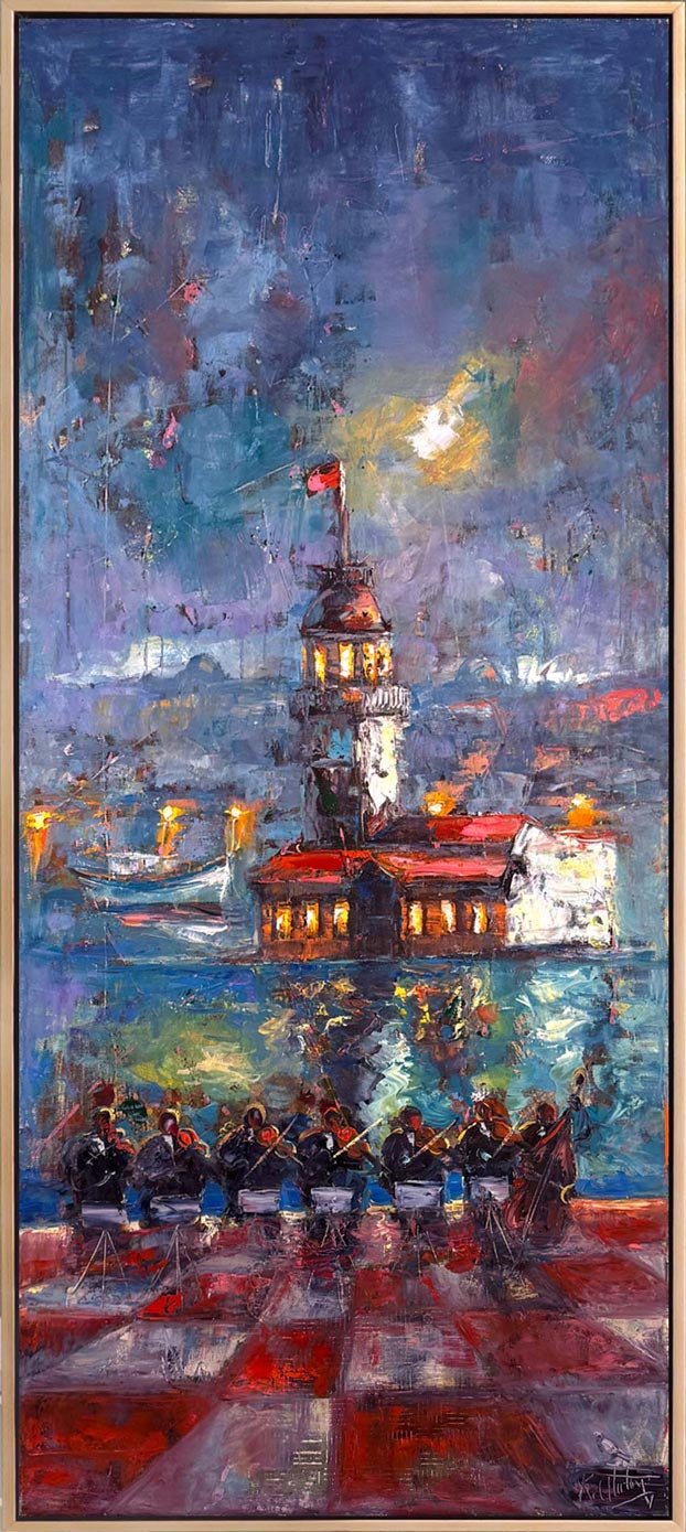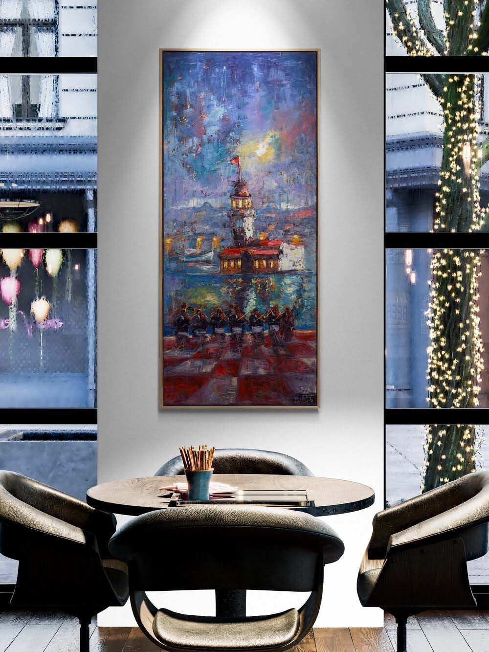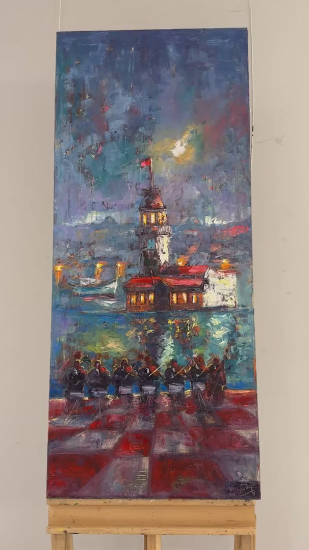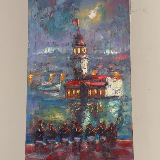 Kız Kulesi'nde Oyun Yağlı Boya Tablosu