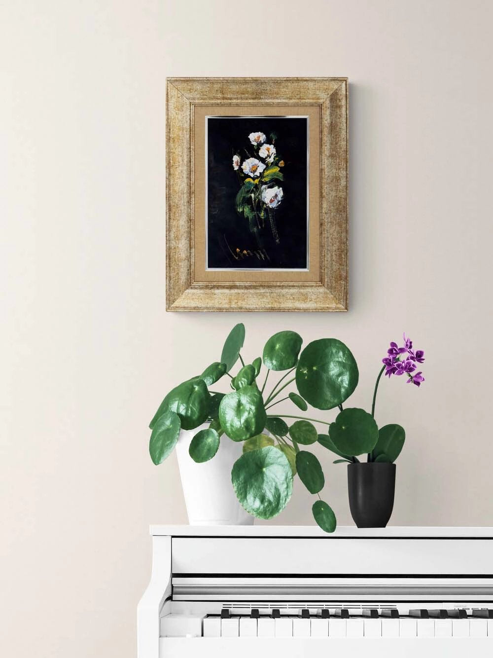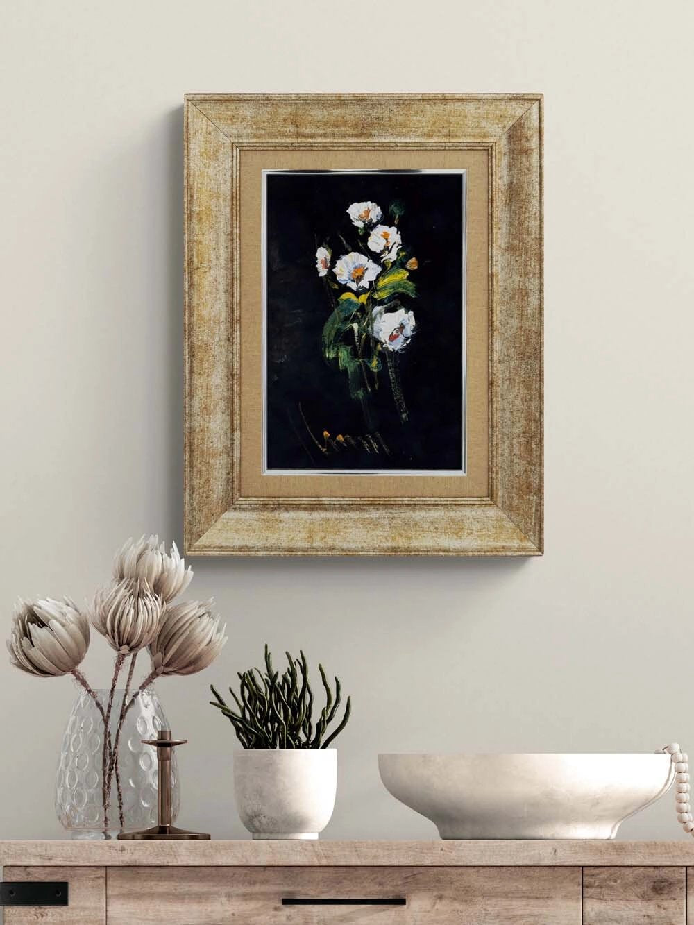 Gecenin İçinde Çiçekler Yağlı Boya Tablosu