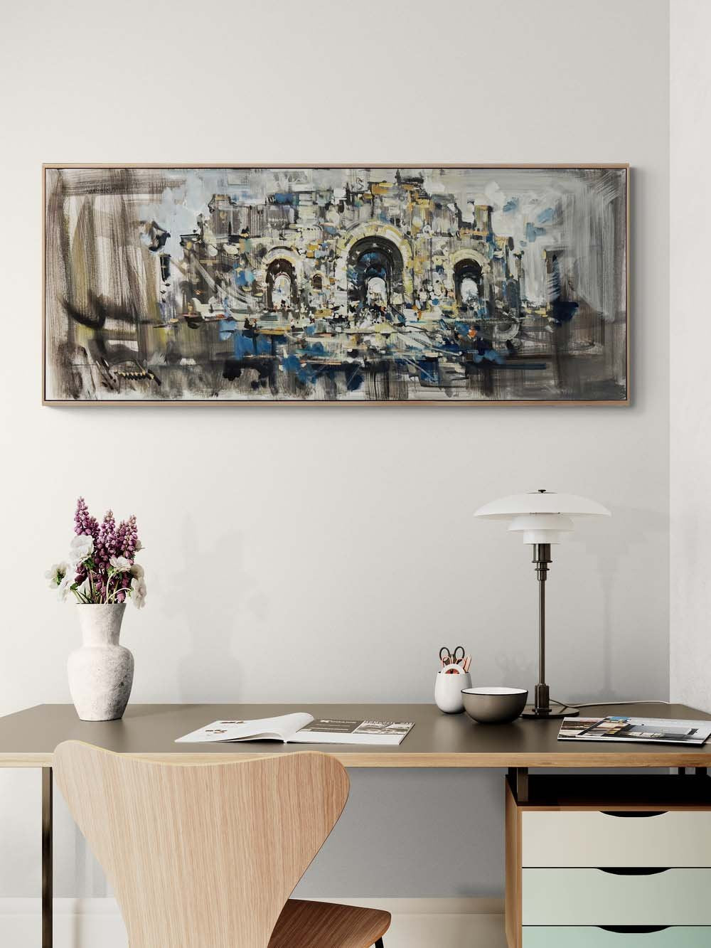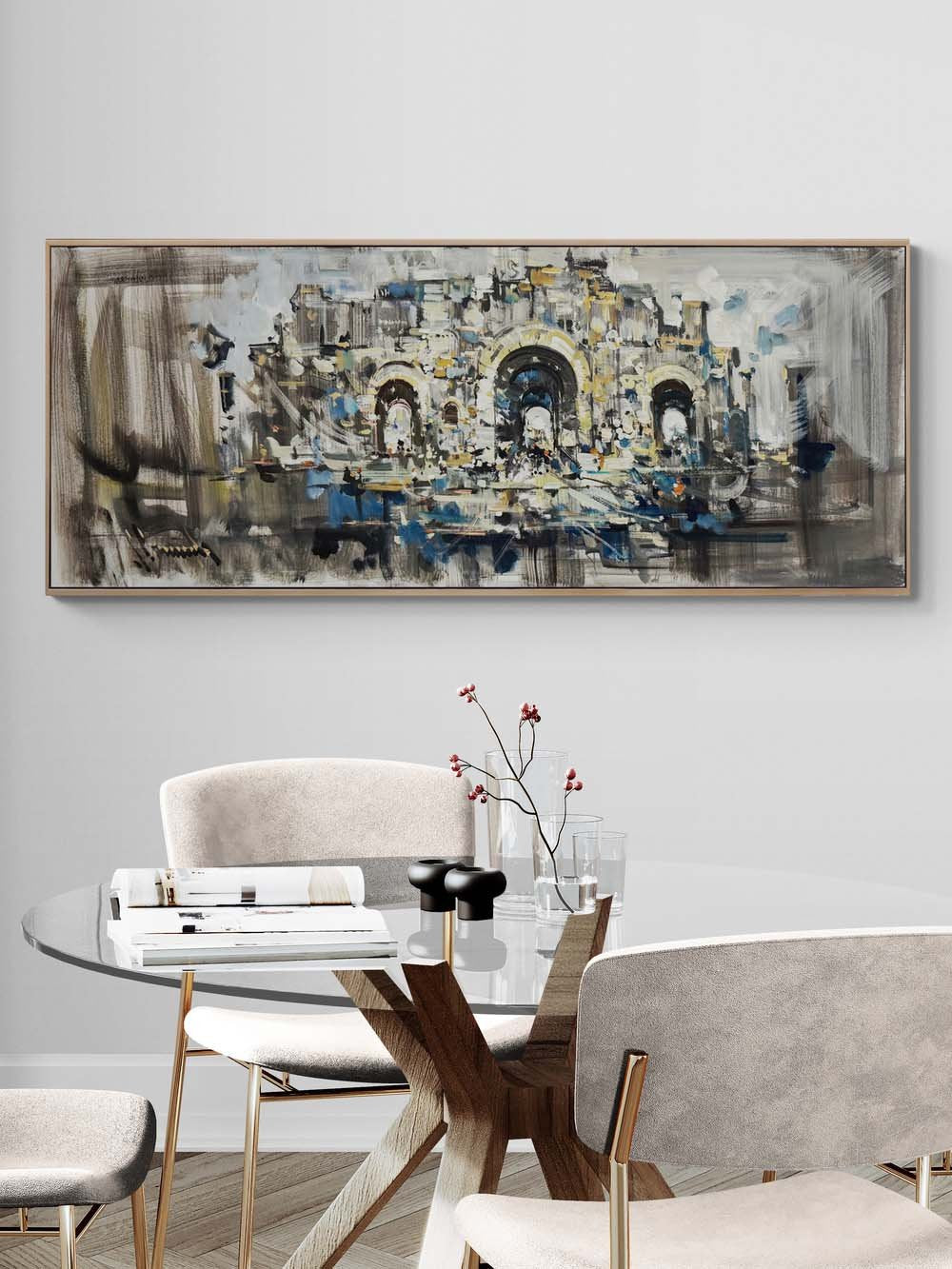 - Özel olarak üretilen 400 gr kalınlığında 1.sınıf sanatsal yağlıboya tuval üzerine çalışılır.