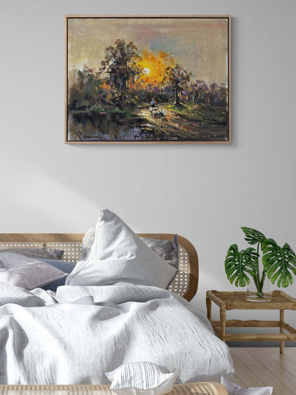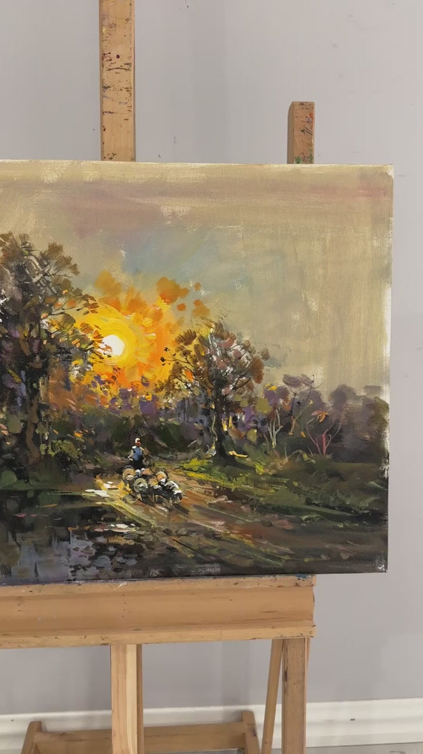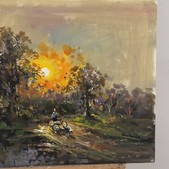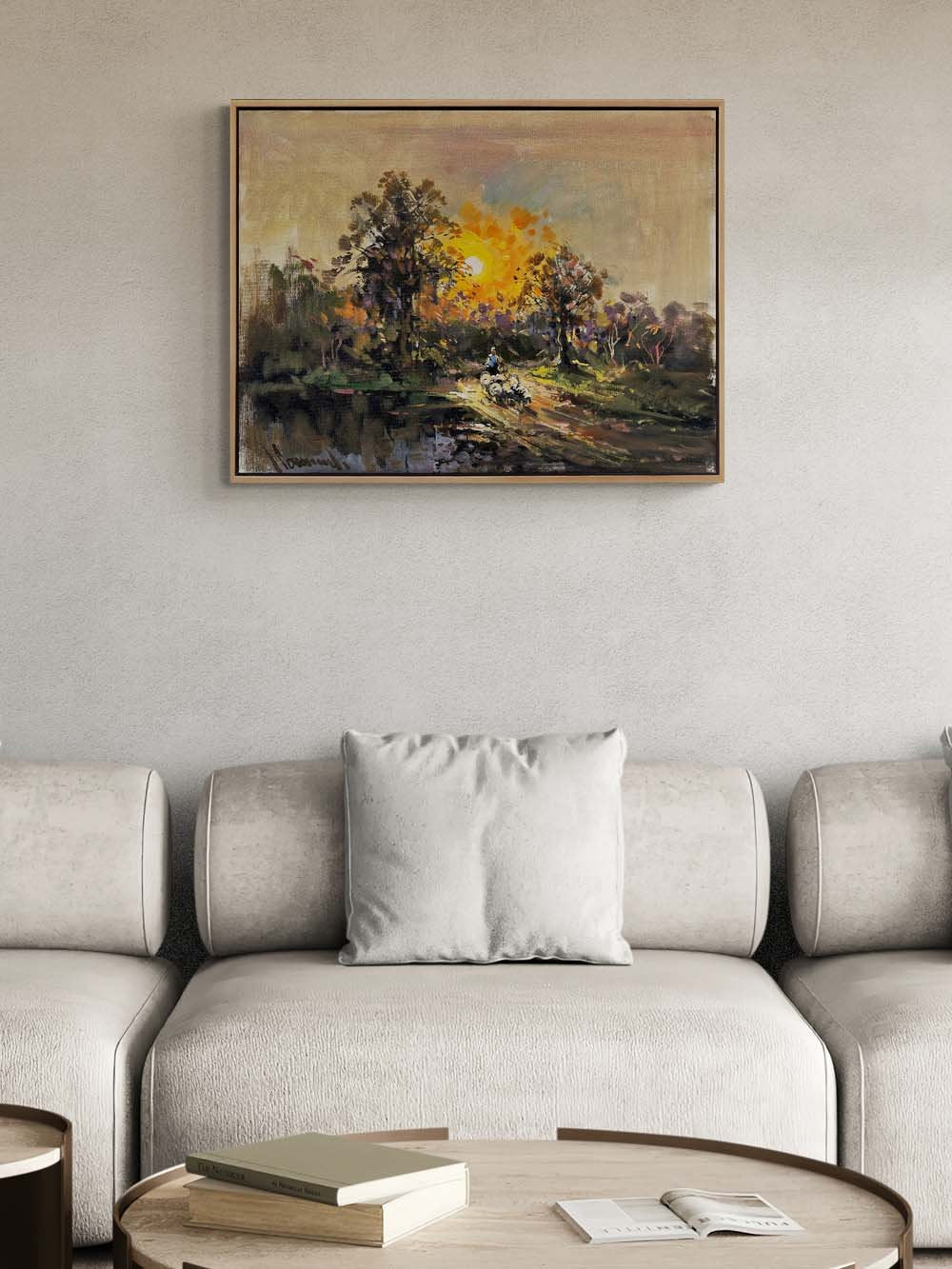 Gün Batımında Köy Yolu Yağlı Boya Tablosu