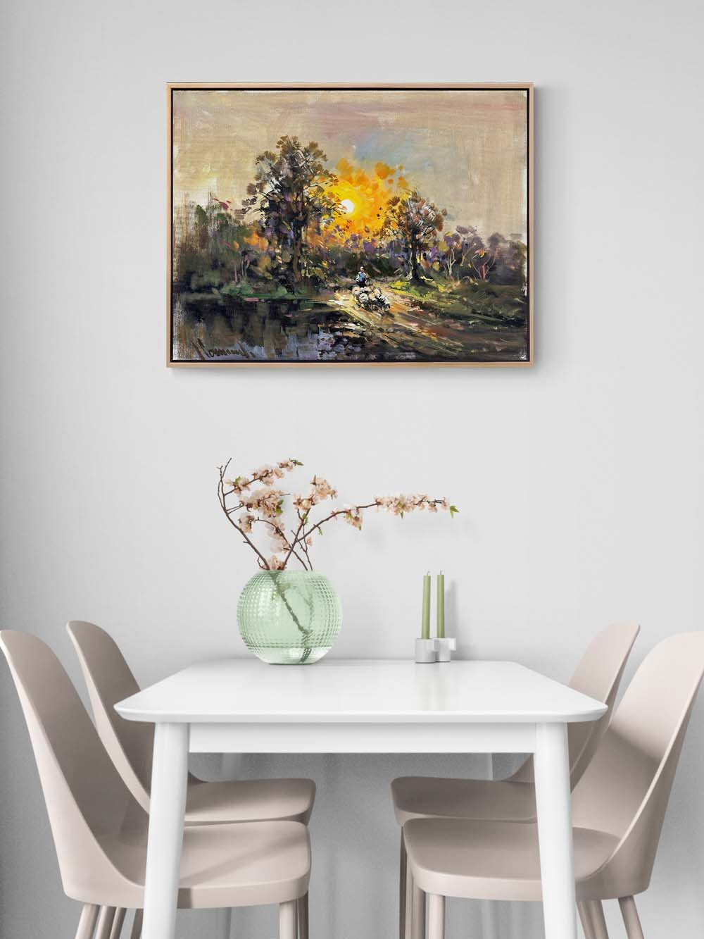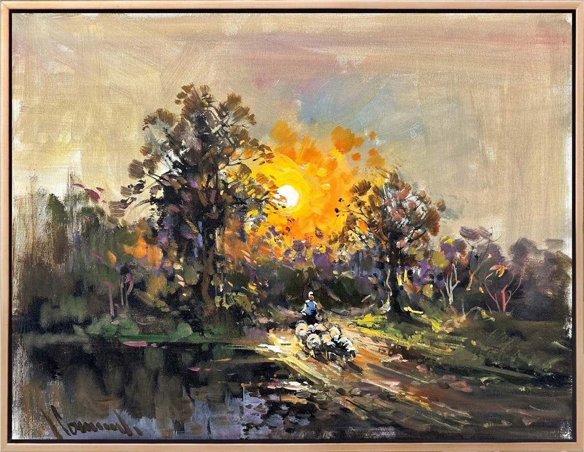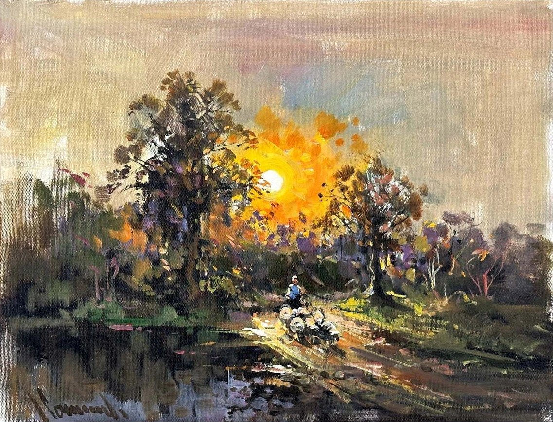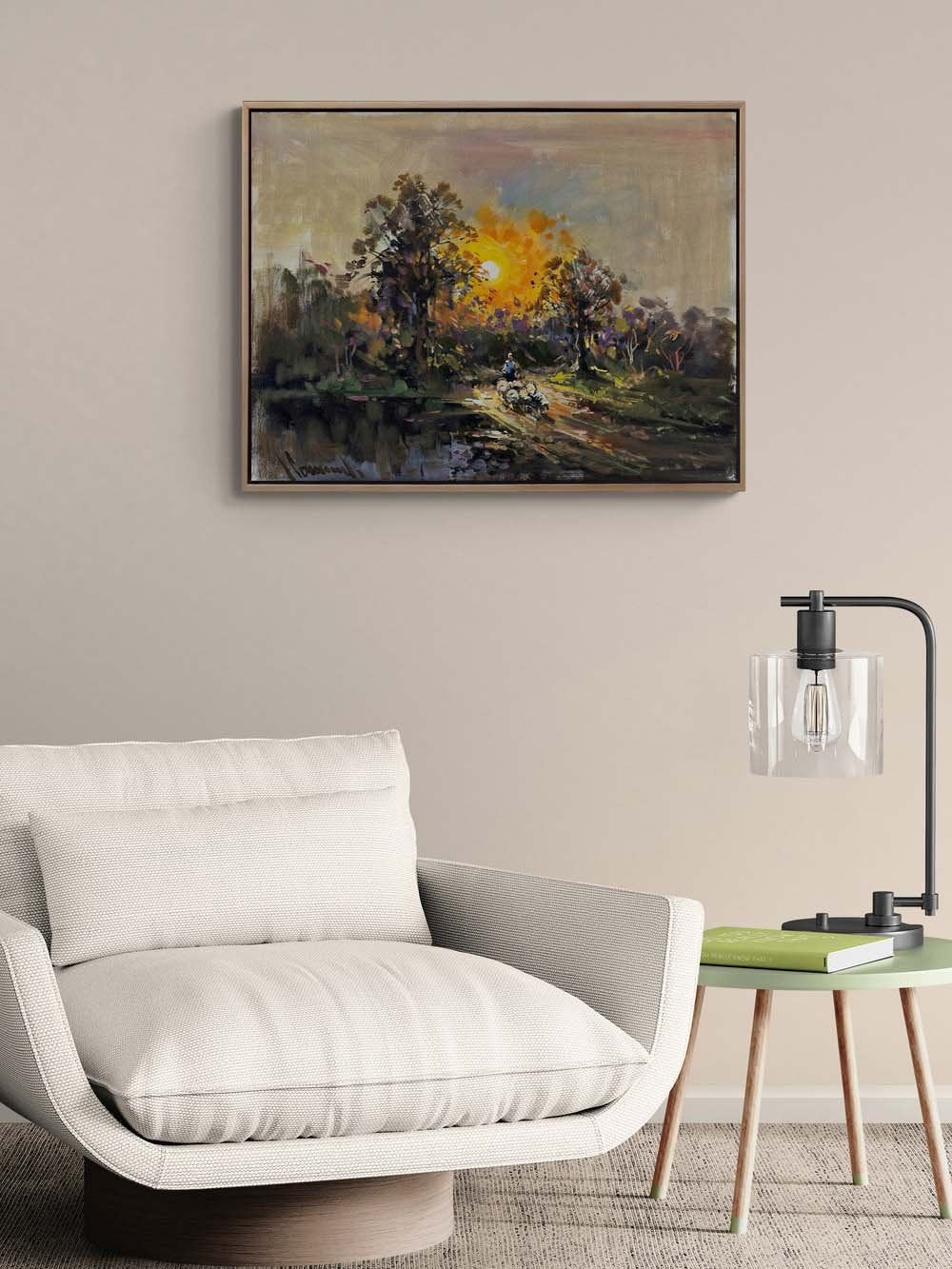 Gün Batımında Köy Yolu Yağlı Boya Tablosu