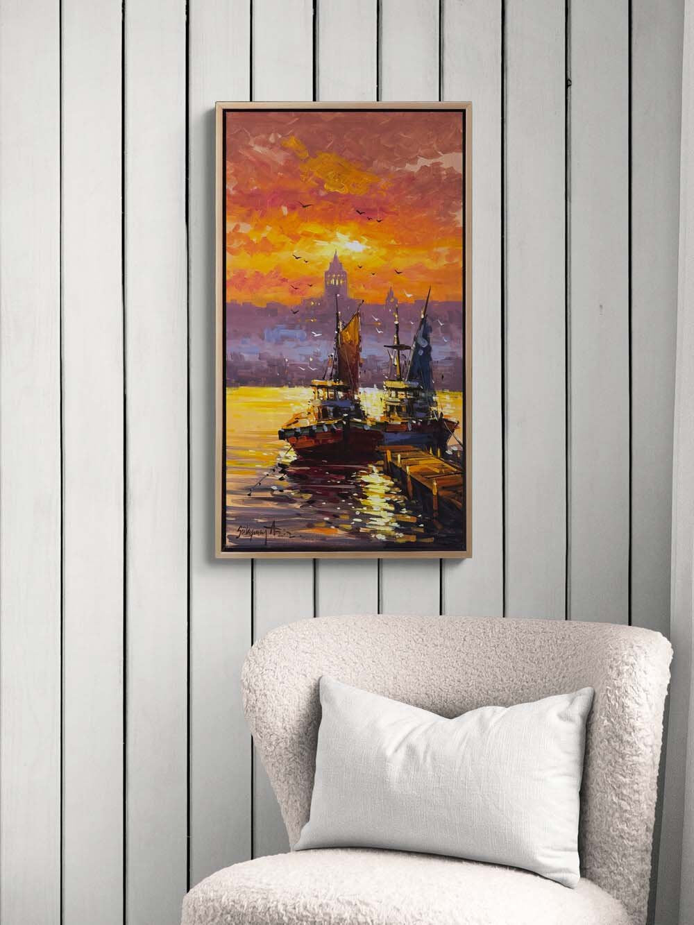 Haliç’te Gün Batımı Yağlı Boya Tablosu