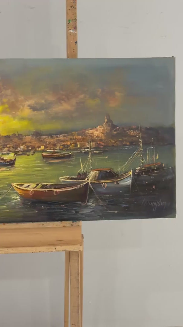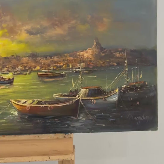 Kız Kulesi Liman Hatırası Yağlı Boya Tablosu