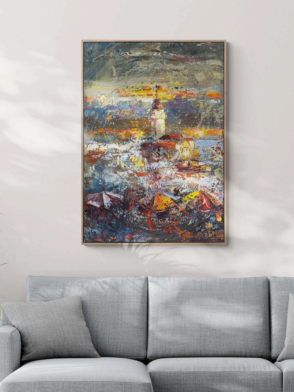 • Özel olarak üretilen 400 gr kalınlığında 1.sınıf sanatsal yağlıboya tuval üzerine çalışılır.