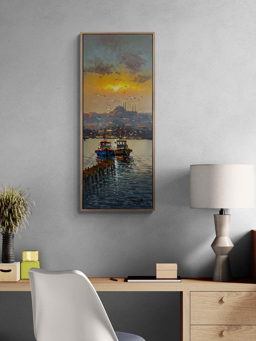 - Özel olarak üretilen 400 gr kalınlığında 1.sınıf sanatsal yağlıboya tuval üzerine çalışılır.