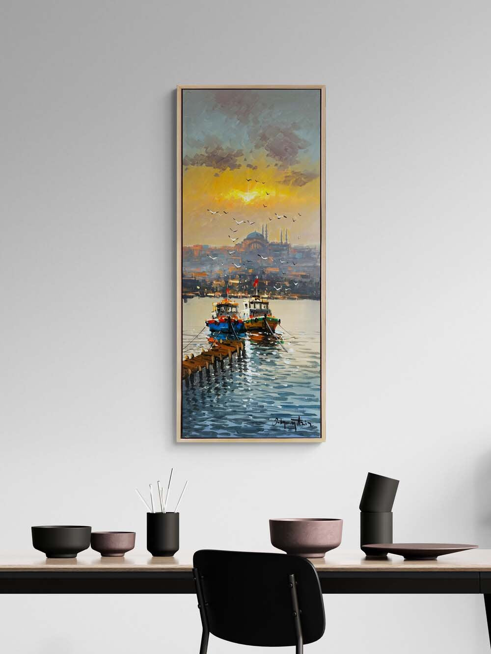 İskelede Balıkçılar Yağlı Boya Tablosu
