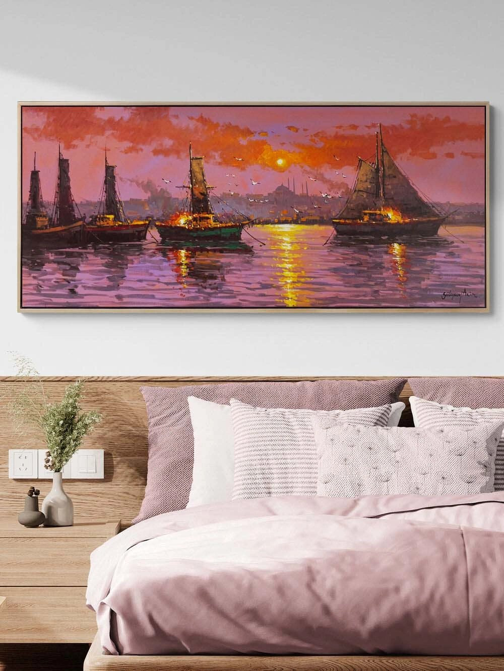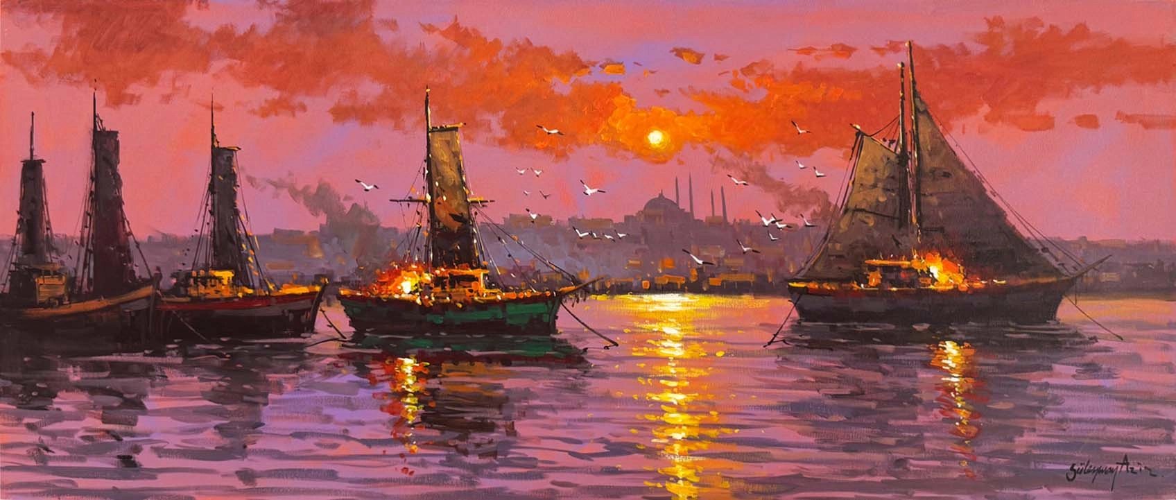 İstanbul Boğazında Tekneler Yağlı Boya Tablosu