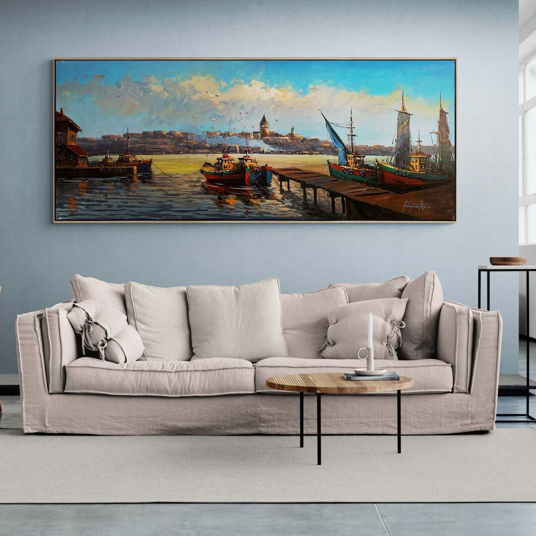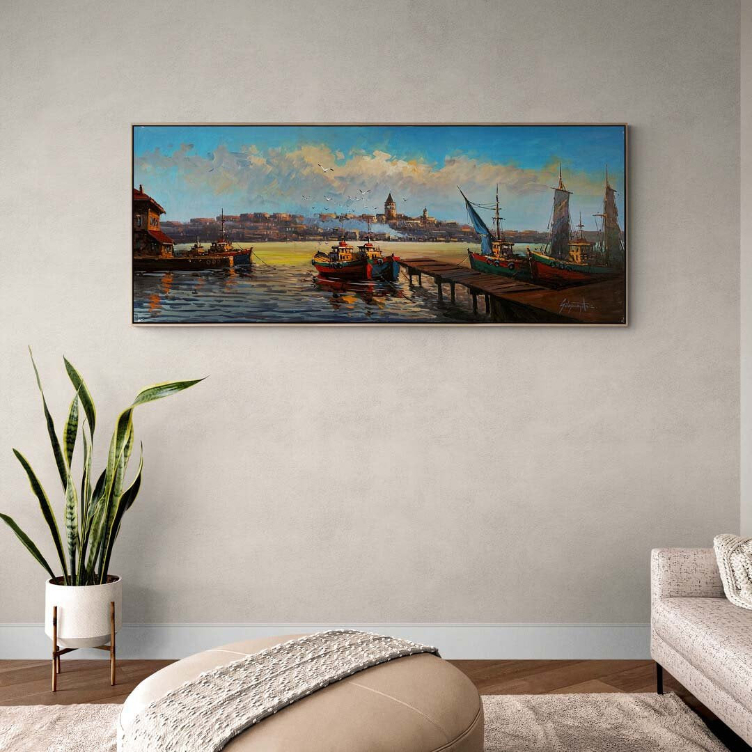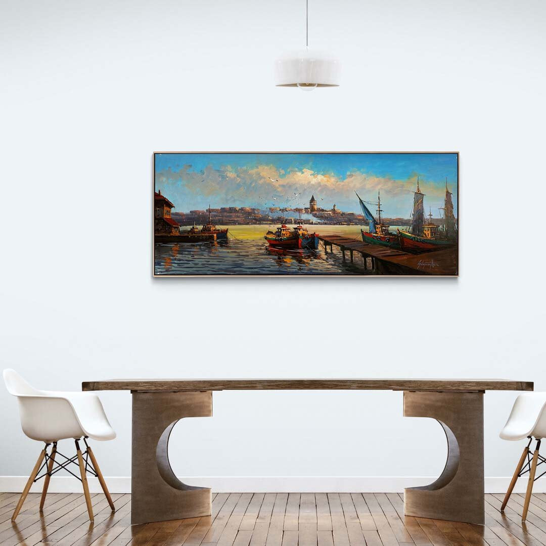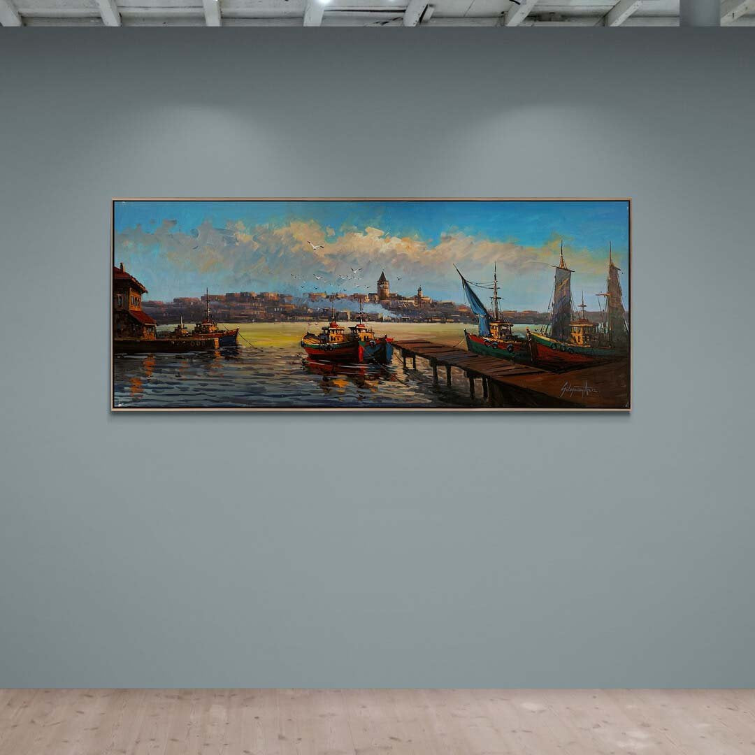 İstanbul'un Ruhunda Boğaz ve Galata Yağlı Boya Tablosu