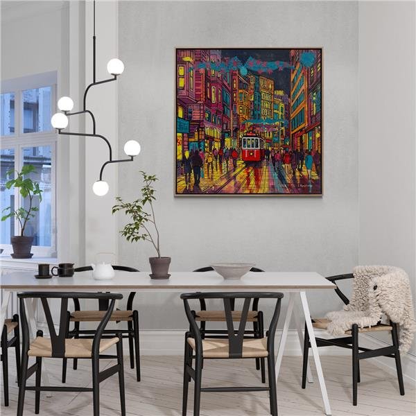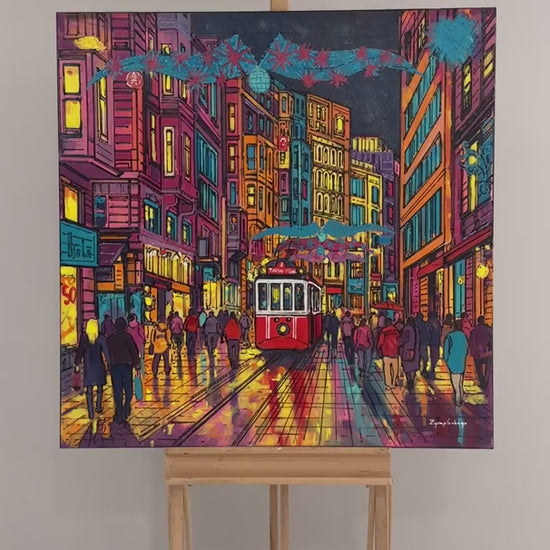 Renkli İstiklal Caddesi Yağlı Boya Tablosu