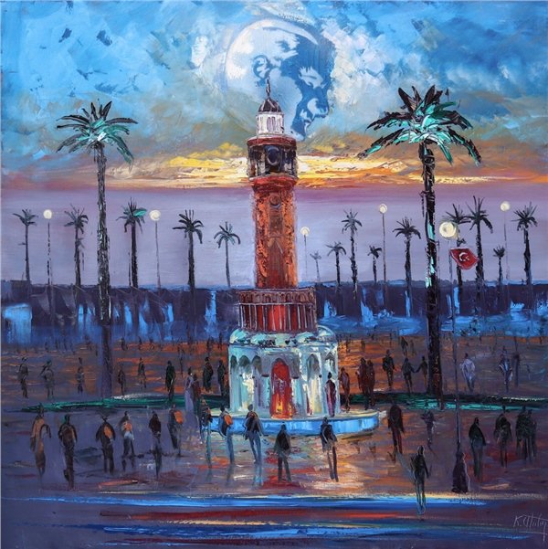 İzmir Saat Kulesi Yağlı Boya Tablosu
