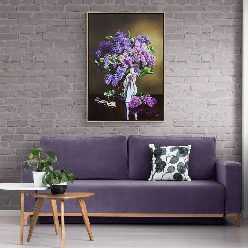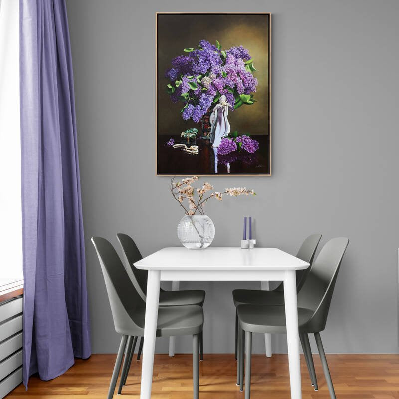 Kadın Heykeli ve Vazoda Leylaklar Siparişe Özel Yağlı Boya Tablo