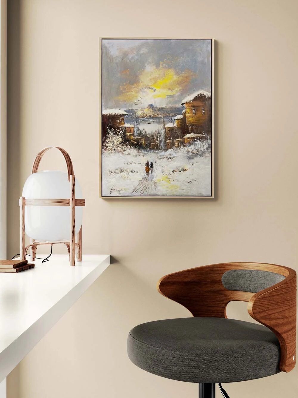 - Özel olarak üretilen 400 gr kalınlığında 1.sınıf sanatsal yağlıboya tuval üzerine çalışılır.