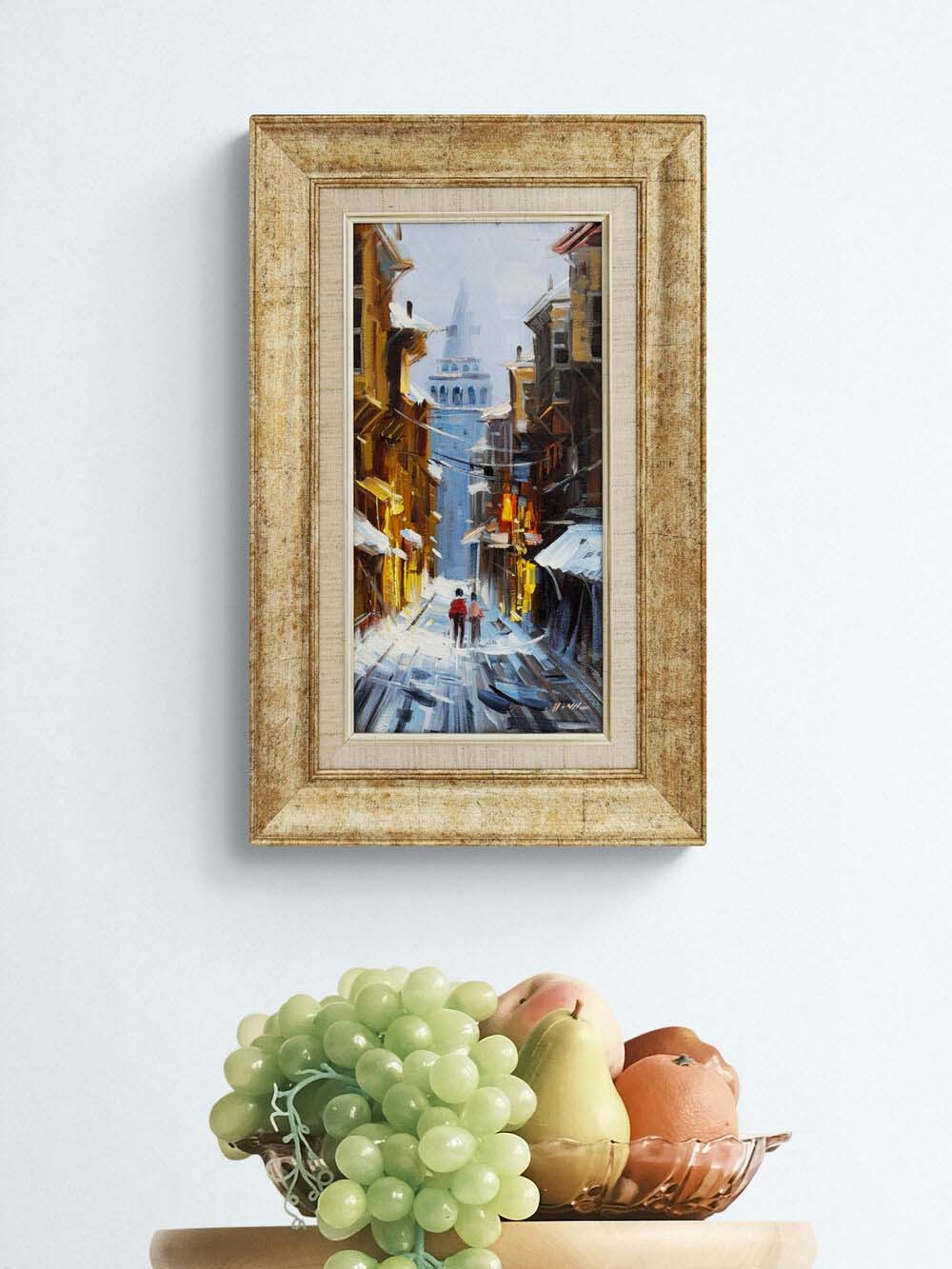 Karda Galata Kulesi Yağlı Boya Tablosu
