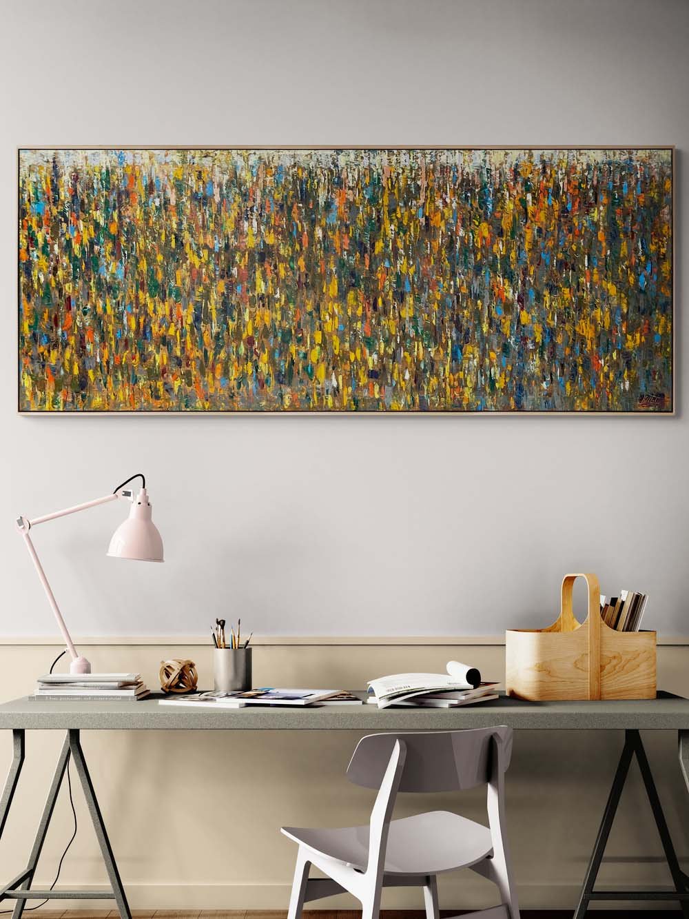 - Özel olarak üretilen 400 gr kalınlığında 1.sınıf sanatsal yağlıboya tuval üzerine çalışılır.