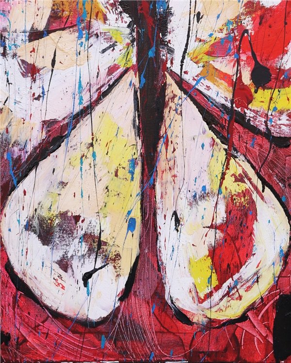 Beyaz Kelebeğin Kırmızı Aşkı Yağlı Boya Tablosu