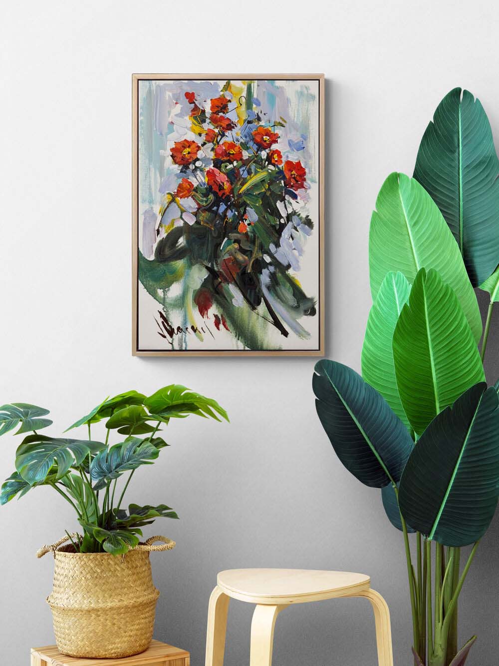 Kırmızı Çiçeklerin Enerjisi Yağlı Boya Tablosu