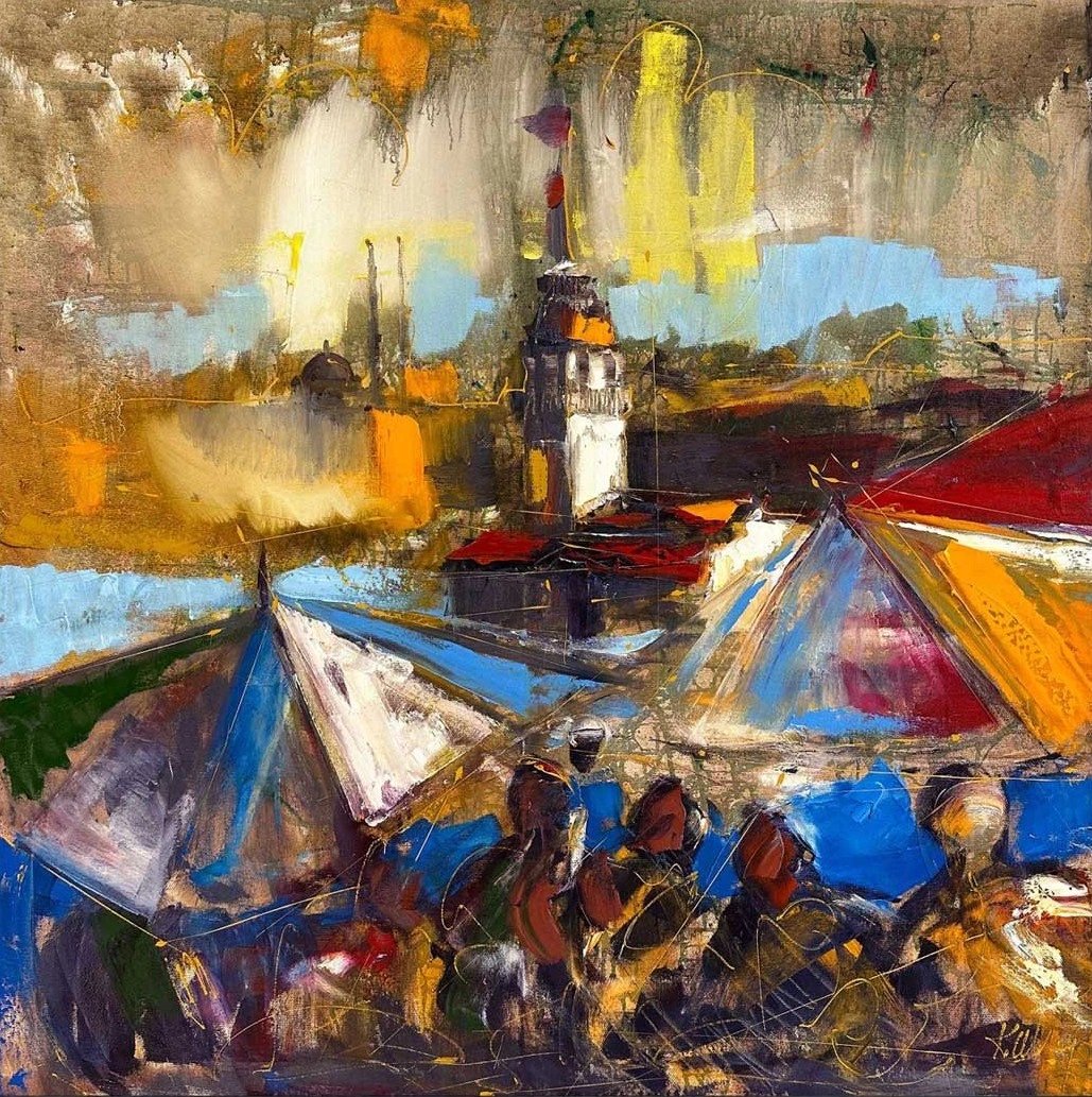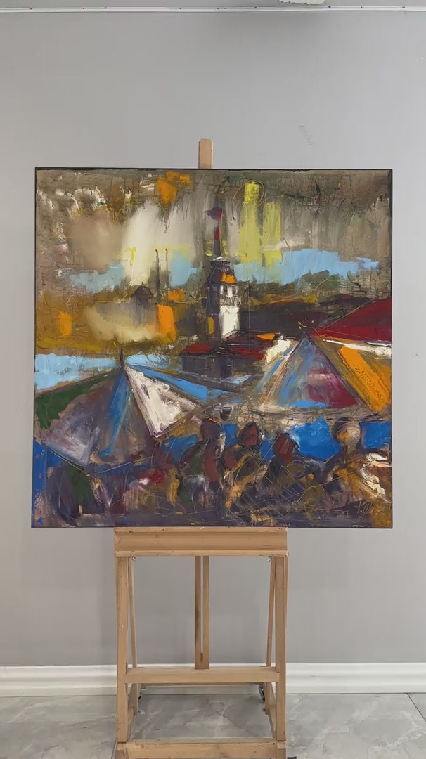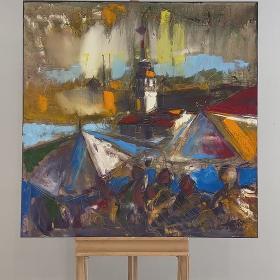 Kız Kulesi Aşkın Sembolü Yağlı Boya Tablosu