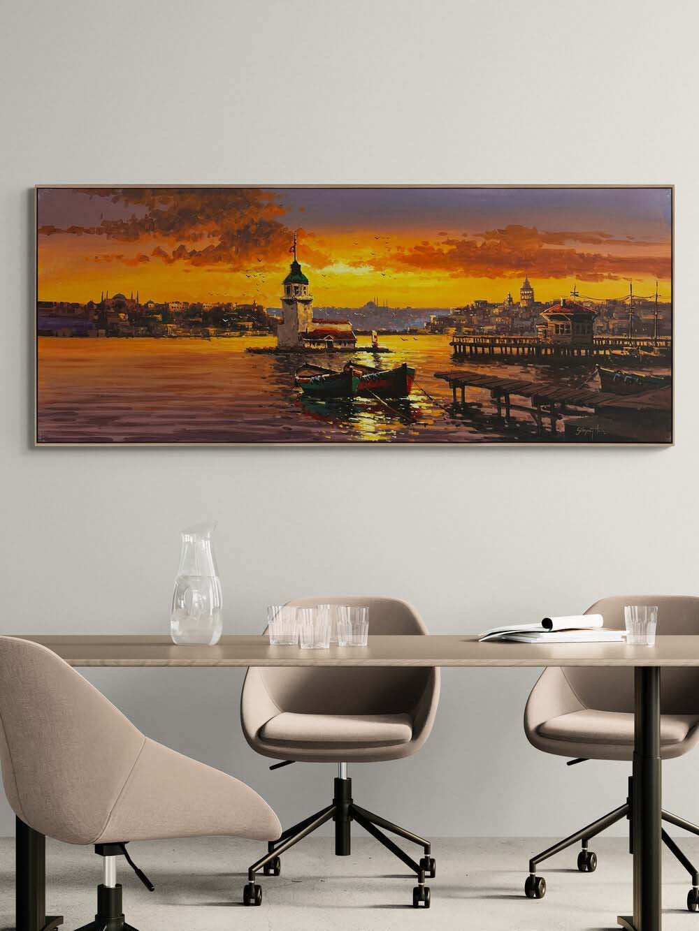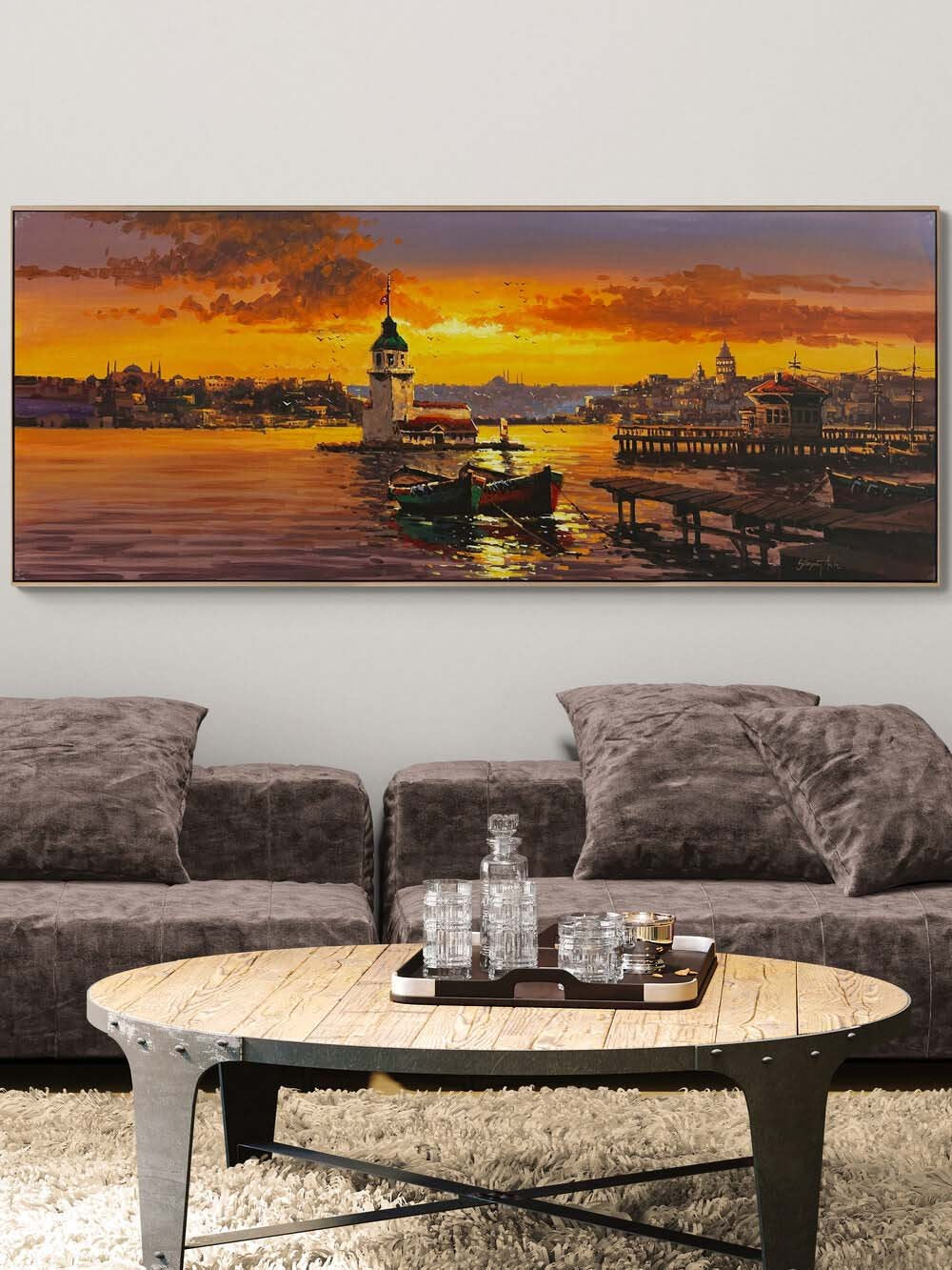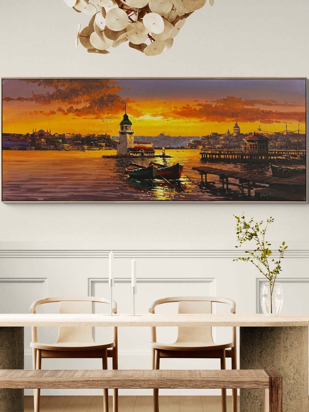 Kız Kulesi'nde Akşam Şarkısı Yağlı Boya Tablosu