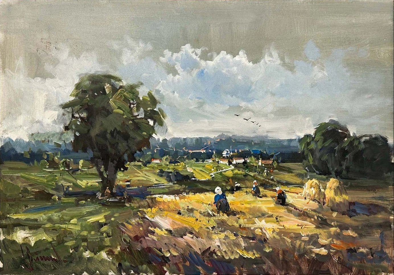 Köyde Hasat Zamanı Yağlı Boya Tablosu