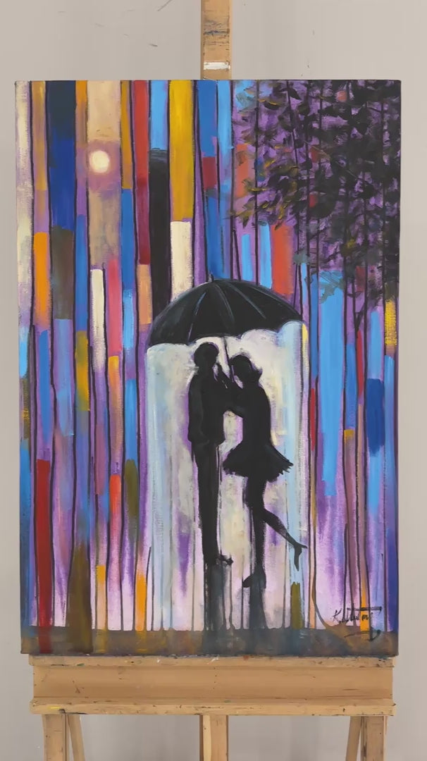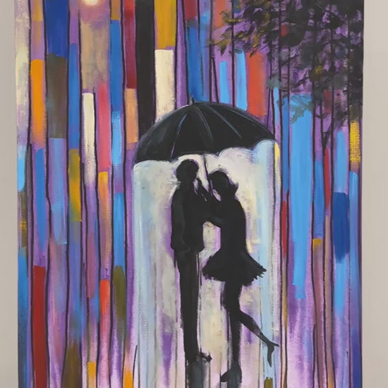 Yağmurun Ritminde Aşk Yağlı Boya Tablosu