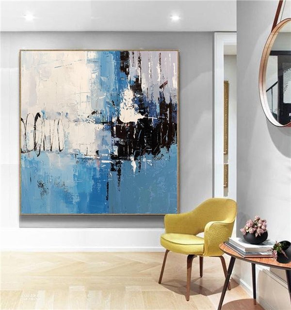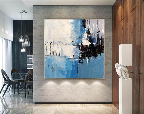 Mavi Siyah Siparişe Özel Soyut Yağlı Boya Tablo