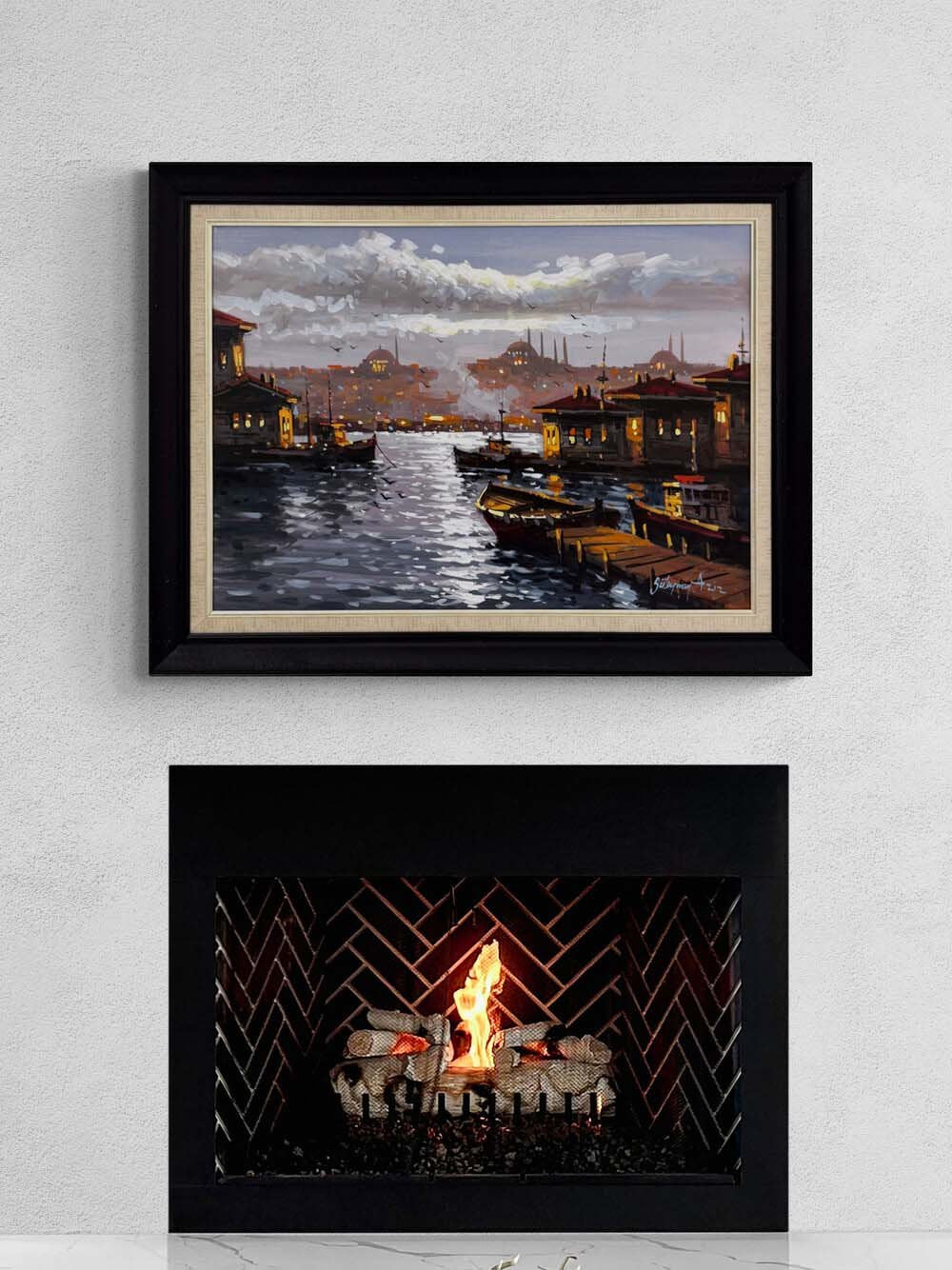 Minareler Arasında Boğaz Yağlı Boya Tablosu