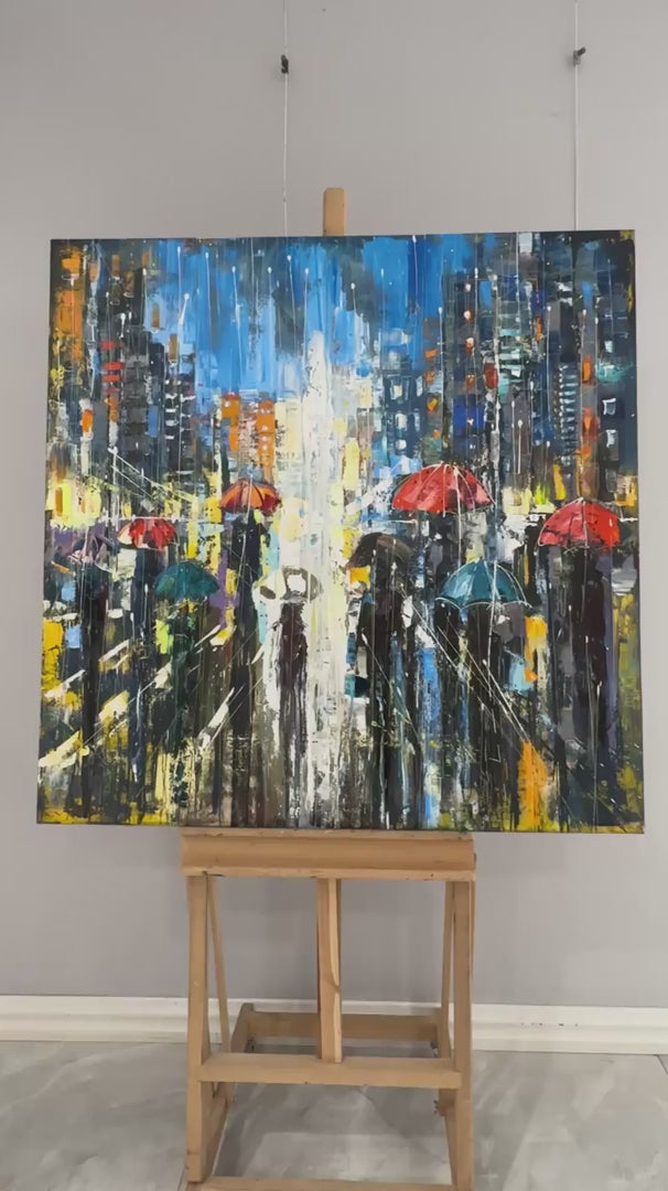 Modern Şehir Kalabalığı Yağlı Boya Tablosu